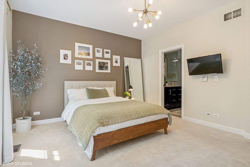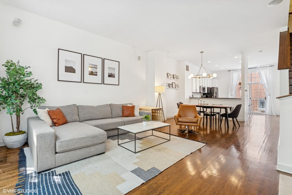 Beautiful & spacious 4-level townhome in St John's Park Community in River West. Sitting on a tree-lined street, this townhome is not your typical cramped townhome floorplan. With over 2,200 square feet of living space, a 2-car garage, a private rooftop deck and a gated private front yard, this truly lives more like a single-family home. 3 bedrooms and 2.5 bathrooms + an additional office space on the 4th level. Spacious kitchen with stone countertops + island, 42" cabinetry and plenty of storage. 2 oversized bedrooms and 2 full bathrooms on the 3rd level - the primary bedroom has a large ensuite bathroom with double vanity and plenty of closet-space. Rooftop deck with skyline views. Close to 90/94 and a 3 minute walk to the CTA 'Chicago' Blue Line.