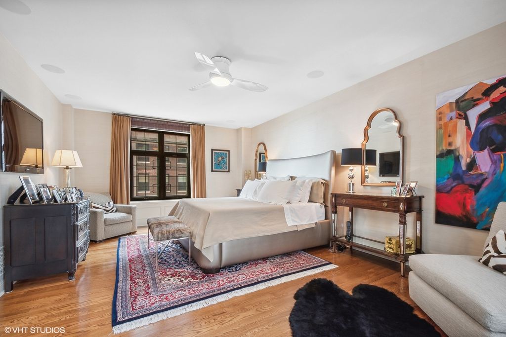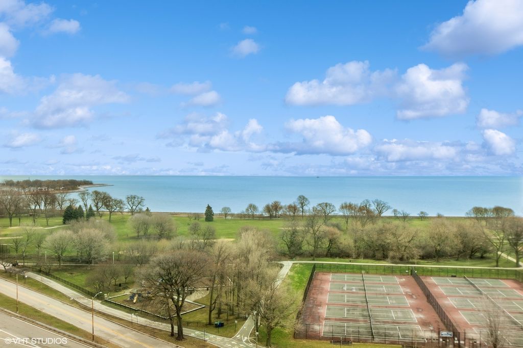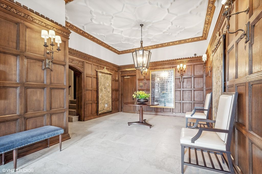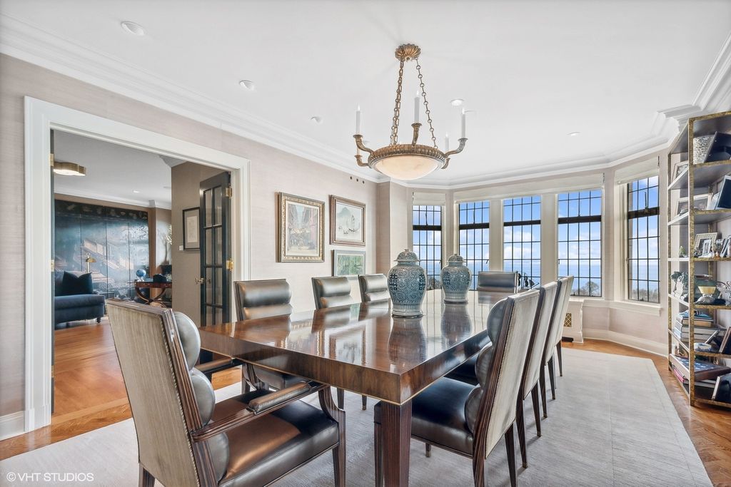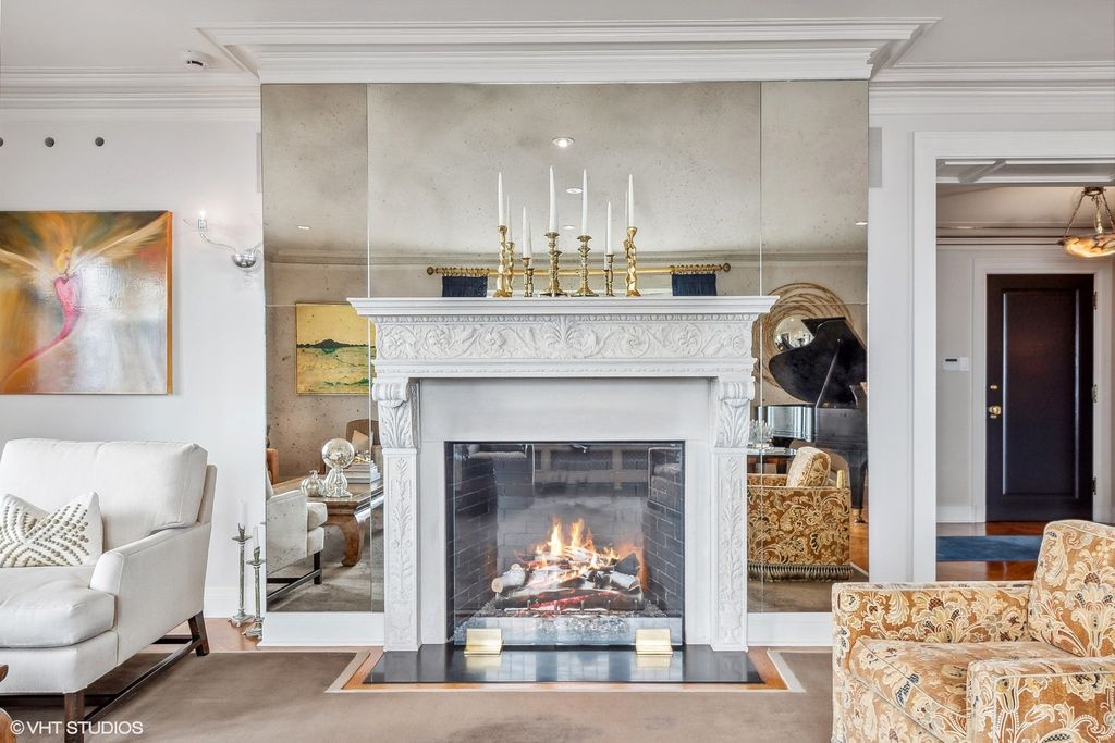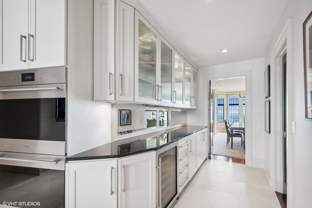 Truly a masterpiece! Gorgeous complete gut rehab of a rare sprawling 3900 sq ft combined single-floor condo with 3bed +Den & 3.5 baths. Premier 'A' Tier unit with South/East exposures and spectacular lake & park views from every room! Private w/ elevator opening directly into unit. Flawless herringbone wide-plank HW flooring, thick crown, base & door moldings, gold leaf dome ceiling at entry, and all new solid-core doors with stunning French hardware. Inviting corner living room with gas fireplace, ornate mantle & adjoining separate dining room ideal for entertaining large dinner parties. Split Floor Plan with 3 En-Suite bedrooms all with heated bathroom floors. Massive 13'x17' Primary Closet (formerly a 4th bedroom). Spacious Chef's kitchen with butler pantry boasts 18x18 Italian tile floors, SubZero refrigerator, Viking Cooktop, Brand New Smeg Microwave, Brand New Wolf double-ovens, and 2 Brand New Miele dishwashers! Large Primary Bedroom includes luxury spa bath, w/ heated floors, custom cabinetry, lavish Calcutta Gold marble steam shower, double vanity and perfume cabinet. Dual Zoned 8 ton HVAC systems. Home includes a "Control 4" Smart Home system. Building features a well appointed gym and beautiful garden area with outdoor seating, and a dog run! 8x5' Storage Unit included. EV charging available, 1 carwash per week included, always free heated garage parking for guests.