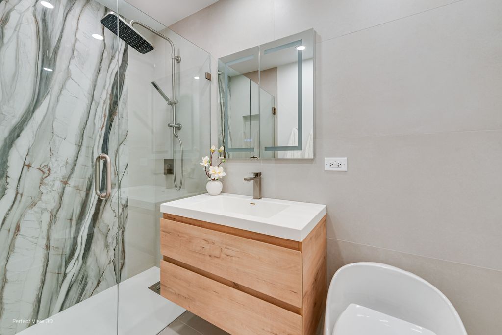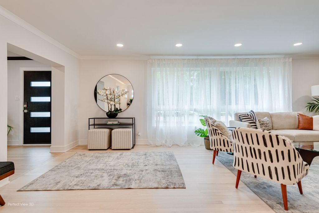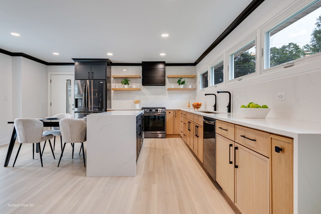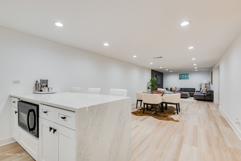 Discover this exquisitely remodeled five-bedroom, three-bathroom home that perfectly blends sophistication with comfortable living. At the heart of this residence lies a spacious, chef's kitchen, featuring white oak wood flooring, stunning quartz countertops and a full-height backsplash. The generous living room, centered around a beautiful fireplace, creates an inviting space for family and friends to gather. The primary bedroom offers a private ensuite bathroom, providing a tranquil retreat at the end of each day. Additional bedrooms offer flexibility for family needs, guest accommodations, or home office space. Entertainment enthusiasts will delight in the finished basement, which includes its own kitchenette and cozy fireplace-ideal for hosting memorable gatherings or enjoying quiet evenings. The back patio serves as another airy living area, perfect for outdoor entertaining. Tasteful landscaping and a pergola enhance the outdoor experience. An attached garage features an EV charger and direct access to the house and back yard. This home is located in a peaceful neighborhood with multiple parks and a golf course nearby. Don't miss this amazing opportunity; schedule your private viewing today!