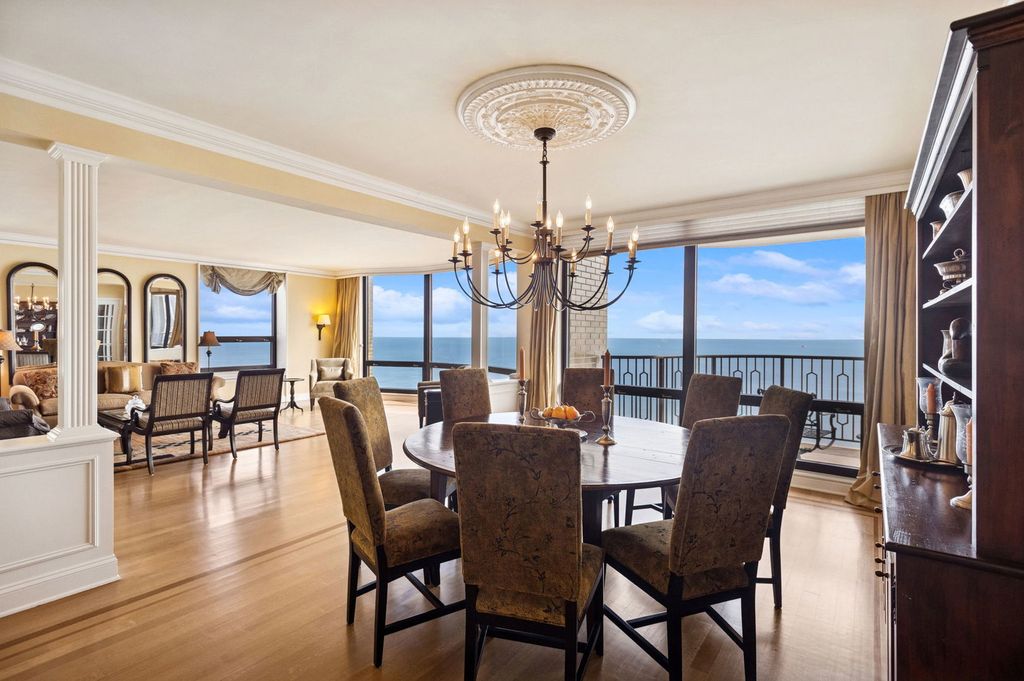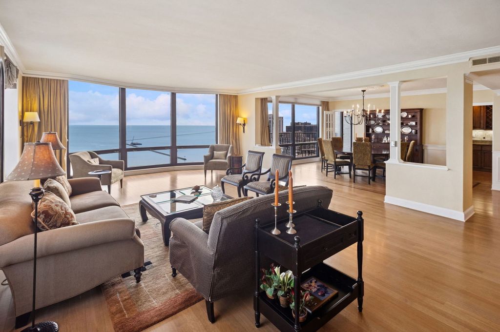 Spectacular and expansive views of the lake and city from 3 exposures, terrace and newer floor to ceiling windows. This high-floor corner 3 bedrooms, 4.5 baths and library has a fabulous open floorplan and gorgeous wood floors throughout. Spacious, bright and open living room with electronic shades, dining room and library with gorgeous custom built-in. Large open kitchen with breakfast area leads to terrace. Primary suite enhanced by lake views, separate baths and walk-in closets. 2nd bedroom and larger 3rd bedroom with en-suite baths. In unit washer and dryer. Parking included. This 30th floor residence allows viewing Navy Pier fireworks. Enjoy luxury amenities with newer contemporary ballroom, exercise room, indoor pool, sundecks, grills and impeccable service at the one and only Carlyle.
