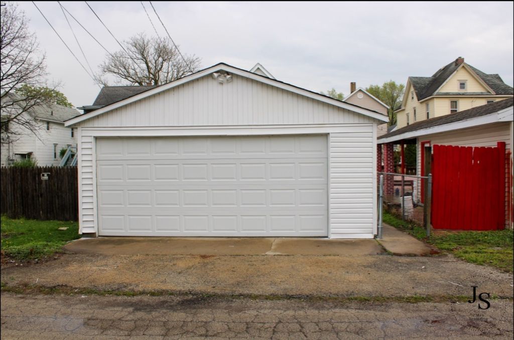 Step inside this spacious 3-story, 4-bedroom, 2-bath home that combines charm with modern updates. With dual front door access and classic white vinyl siding, this home welcomes you with great curb appeal. Enjoy outdoor living on the concrete patio and take advantage of the 2-car detached garage. The first floor features a generous layout with separate living, dining, and kitchen areas-perfect for entertaining or relaxing in style. The updated kitchen boasts luxurious gold fixtures, a multifunctional sink, and stylish finishes that elevate the space. A convenient full bath just off the dining room is ideal for guests. Throughout the home, light blue walls and bold blue carpet create a unique and cozy vibe, while the custom stair handles add both style and functionality. Upstairs, you'll find three well-sized bedrooms and a full bath, including a primary suite with dual closets. The third floor offers a private fourth bedroom filled with natural light-perfect as a guest room, office, or creative retreat. Plus, there's plenty of extra storage space. Additional highlights include a brand new furnace and water heater for peace of mind. Don't miss this rare blend of space, style, and thoughtful updates!