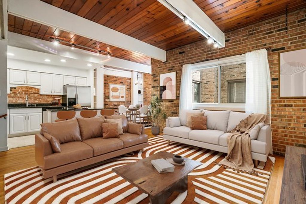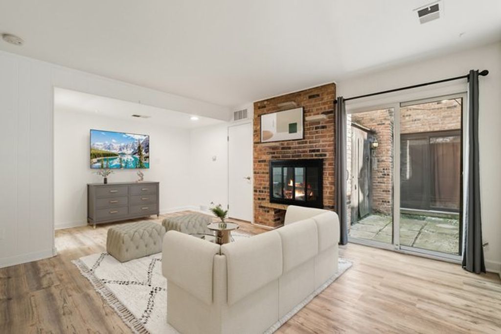 Step into this charming townhome, ideally located on a picturesque tree-lined street in the heart of Lincoln Park. The first floor offers a versatile office/den and a convenient half bath, with direct access to a private outdoor patio-perfect for grilling and entertaining. The second level boasts an open floor plan featuring exposed brick walls, wood ceiling beams, and a spacious kitchen with an island, granite countertops, and stainless steel appliances, all seamlessly connected to the living and dining areas. The third level includes two generously sized bedrooms and a full bathroom. Additional highlights include Lincoln Elementary & Lincoln Park High School district, in-unit washer and dryer, one outdoor parking space included in price, pet-friendly and low HOA Unbeatable location: steps from the lakefront, Lincoln Park, Oz Park, Lincoln Park Zoo, Armitage and Old Town shopping and dining, and excellent public transportation. Don't miss this home on one of the best blocks in Chicago!
