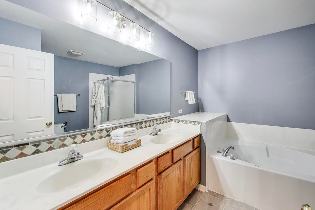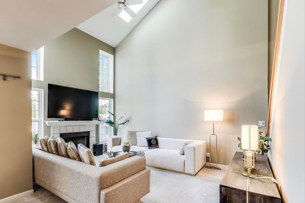 Rarely available 2 bedroom/2.5 bath townhouse in the highly sought-after "Citadel on the Lake" subdivision. This home offers the perfect blend of comfort, style and convenience. Step into bright entryway featuring an open layout, dramatic floor-to-ceiling windows, skylights and a cozy gas fireplace that anchors the spacious living room. The adjacent dining area flows seamlessly onto a generous deck--ideal for relaxing or entertaining. The updated kitchen boasts of granite countertops, classic tile backsplash, stainless steel appliances, ample counter space and a sunlit breakfast nook. A convenient laundry closet is tucked nearby for added ease. Upstairs, the luxurious primary suite offers vaulted ceilings, a large walk-in closet, and a spa-like bath with dual vanities, a soaker tub, separate shower, and linen closet. A spacious second bedroom, additional full bath and a versatile loft complete the upper level. The fully finished English basement provides even more living space, ideal for a home office, gym, playroom or guest retreat, plus extra storage. Located near schools, major highways and Oak Brook Mall. Move-in ready. Perfect place to call HOME!