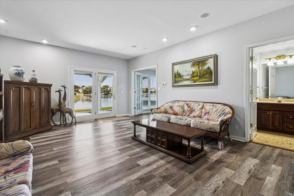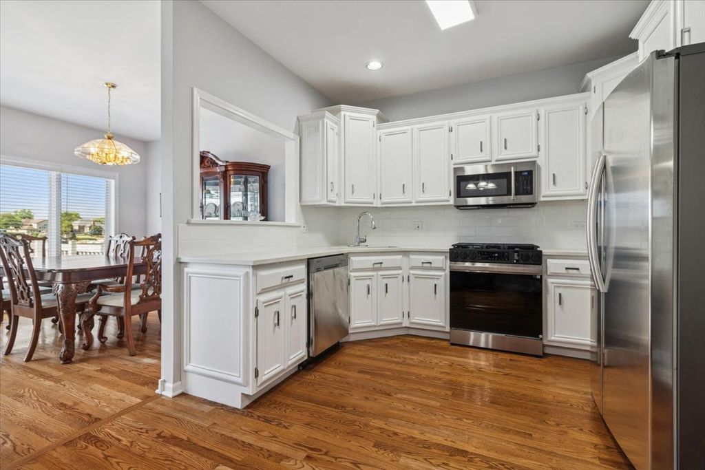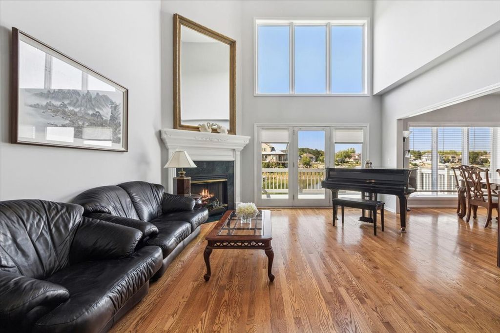 Located in The Lakelands of Plainfield, a double-width deck provides sweeping panoramic views of the lakefront-Highly sought after, and rarely available. While the view from the rear of the home is its selling point, the home offers so much more on the inside! The main level features a dramatic living room with vaulted ceilings and full-height windows framing the lake to perfection. A formal dining area with floor to ceiling water views, transitions to a designer kitchen with quartz countertops, white cabinetry, farmhouse sink, and stainless steel appliances. The breakfast nook provides versatility for casual dining or expanded storage. A discreetly placed laundry room and guest bath with pocket door complete this level. Upstairs, a loft space overlooks the living room and offers an ideal setting for an office or lounge. The primary suite is a retreat with expansive lake views, a generous walk-in closet, and a spa-inspired bath with jet tub, dual vanities, and separate shower. A second bedroom and well-appointed full bath provide comfort and privacy for guests. The walkout lower level extends the home's living space with a custom wet bar, spacious recreation room, and French doors leading to a private bedroom with full bath and walk-in closet. Large windows continue to capture the lakefront setting. An oversized two-car garage with concrete driveway enhances convenience. Recent updates include new HVAC system (2025) New windows on the 2nd floor (2024) New Garage door (2024) Upgraded countertops in the kitchen (2024) and fresh paint throughout (2025) Centrally located in Plainfield, this home combines refined design with the rare opportunity for true waterfront living! ________________________________________