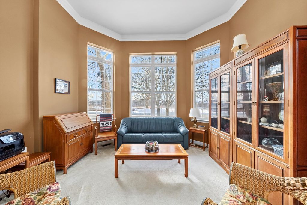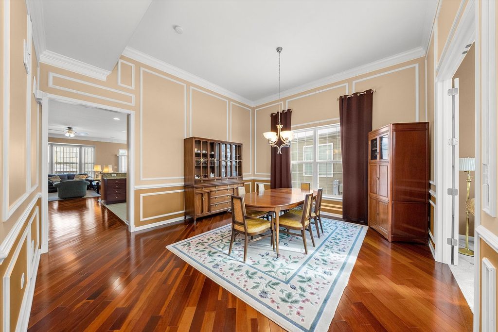 Beautiful Lehigh model located in the highly sought-after Bowes Creek 55+ community. This spacious home offers elegant features throughout, including Brazilian Cherry hardwood floors, custom wood accents, crown molding, and a dramatic 12-foot entry ceiling. The gourmet kitchen features granite countertops and a charming bay window that fills the space with natural light. Additional highlights include built-in ceiling surround sound, a distinctive home office, and a full basement with 10-foot ceilings-perfect for future finishing or storage. Step outside to a large wood deck overlooking a premium lot with serene, picturesque views. As part of the Bowes Creek clubhouse community, residents enjoy access to the pool, clubhouse, and resort-style amenities.