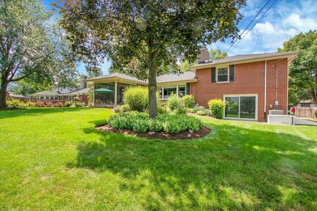 Impeccably maintained and full of charm, this 3 bed, 2.5 bath split-level with home offers incredible space, functionality, and outdoor beauty-complete with a huge sub-basement! The eat-in kitchen has been tastefully updated with natural wood shaker cabinets, quartz countertops, and stainless steel appliances. A separate dining room opens to the spacious living room with a cozy gas fireplace, which flows into a den perfect for relaxing or working from home. Upstairs, you'll find three generous bedrooms, including a shared primary suite. The lower-level family room is expansive, featuring a second fireplace, great closet space, and direct access to your private backyard oasis-complete with a custom drip irrigation system, electric pet containment system, vibrant flower beds, a large shed, and a concrete patio ideal for entertaining or unwinding. A screened concrete porch offers year-round enjoyment with retractable screens. The sub-basement is massive, bone dry, and perfect for storage or future possibilities. House also comes with whole house generator, alarm system, and, the house has public water, yet well for the outside for watering your beautiful yard. Super close to the village nature park and forest preserve. A true gem you don't want to miss-call Mark for showing details!