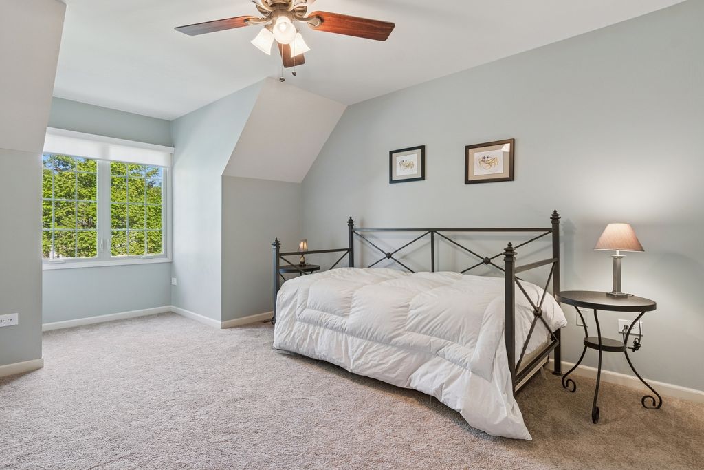 Welcome to your private oasis at the end of a serene cul-de-sac. This move-in-ready, 4-bedroom home is an entertainer's dream, featuring an updated kitchen with abundant cabinetry, center island and access to the spacious deck. The Kitchen flows into the family room with volume ceilings, eye catching fireplace and plenty of windows for light. The spacious living and dining rooms with bay windows are great areas to gather. The first-floor den, enclosed by French doors features a large closet and offers the perfect space for a home office, or potential fifth bedroom. Rich hardwood floors create a warm, inviting atmosphere throughout the main level. The luxury primary suite is the perfect retreat with vaulted ceiling, sitting area and a walk-in closet. Wait until you see the fully remodeled spa-like primary bath with freestanding tub, large walk-in shower and a 2-tier vanity with double sinks and marble countertops. There are 3 other spacious bedrooms upstairs and remodeled hall bath. Head downstairs to the finished basement, offering endless possibilities with 3 different entertaining areas. The movie screen with equipment and sectional stay so you can move in and enjoy some relaxing time immediately. The true highlight is the breathtaking, park-like backyard, a tranquil escape with a large deck, fire pit, sprinkler system and lush greenery. This is one of the biggest lots in Ashbury and has a 3-car garage! You will also have access to the neighborhood pool and clubhouse completing this wonderful lifestyle. Every detail has been considered, leaving you nothing to do but move in and enjoy this amazing home.