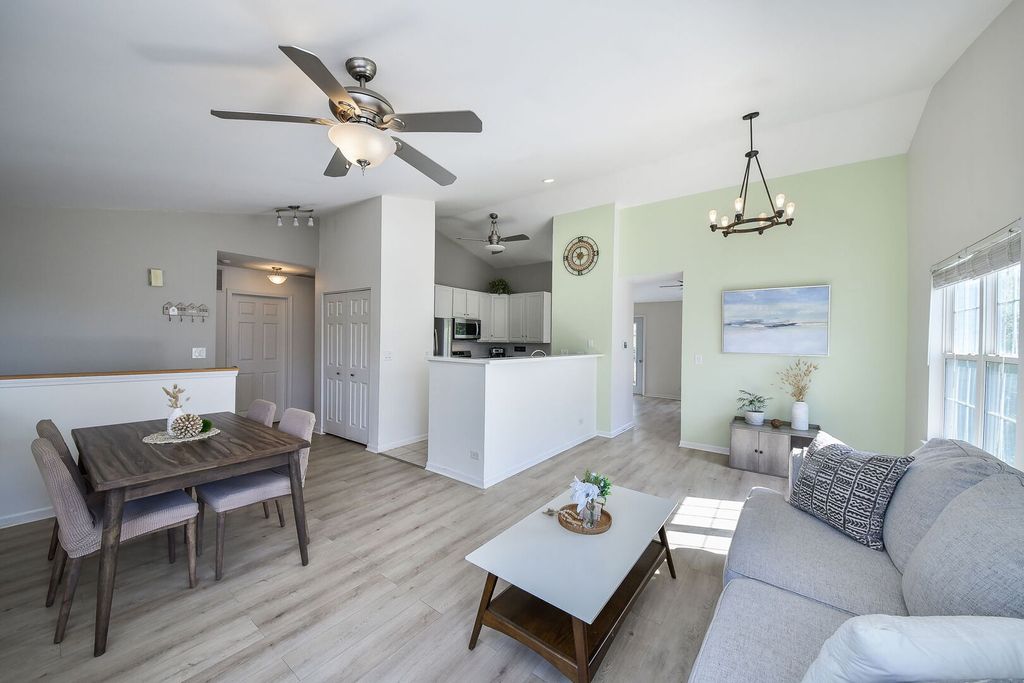 Bright sunny end unit located in Enclave @ Country Lakes community if Naperville. This well maintained end unit showcases the coveted 2 car garage (LOTS of storage & attic access) & features an open, flowing floor plan. Distinct living areas include the living/dining room combo & family room. Tile backsplash, 42" cabinets, Stainless Steel appliances & granite countertops set the stage for many gourmet meal opportunities. Relax in the spacious family room with vaulted ceiling & built in cabinetry along with direct access to the balcony - perfect for star gazing! Primary en suite boasts large, deep walk in closet & updated bath. Stately second bedroom with custom wall molding can be used as office/flex room & has easy access to full updated bath. New water heater installed in 2022. Entire unit painted within past 3 years. New light fixtures in both bathrooms. New exterior siding in 2021. Located close to walking paths, & Country Lakes parks, shopping, restaurants & downtown Naperville. Easy access to I88. Award winning District 204 schools. New Exterior Balcony Door - '25; New Furnace - '23; New LVP flooring - '23; New SS Appliances & Water Heater - '22; New Siding - '21; New Roof - '20