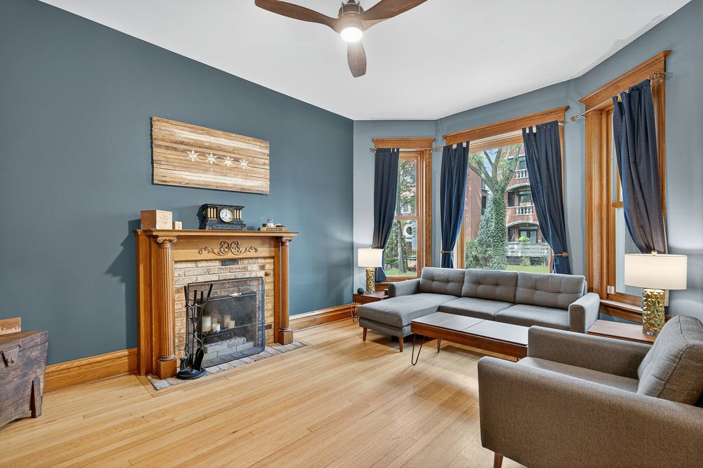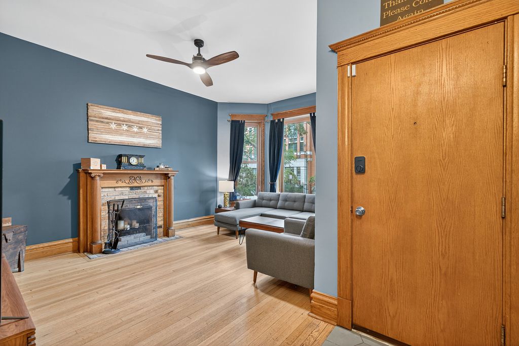 Discover the charm of this beautiful vintage building on Buckingham Place, ideally located just a stone's throw from Wrigley Field and within walking distance of your favorite restaurants. Enjoy easy access to the lakefront and scenic bike trails, making this Chicago property a true gem. This spacious unit features two full bedrooms and two bathrooms, along with a versatile bonus room that can serve as an office or extra dining area for entertaining guests. As you step through the front door, you'll be greeted by a large living space adorned with a decorative(gas) fireplace and expansive windows that fill the room with natural light. The woodwork throughout the home is breathtaking! The unit boasts a brand new in-unit washer and dryer(2020) for your convenience, along with a fully remodeled second bathroom with a custom walk-in shower. The kitchen has been beautifully remodeled, featuring a stylish backsplash, modern counters, and sleek hardware, complemented by stainless steel appliances and a convenient wine fridge. (2020) New light fixtures and ceiling fan throughout the home! Ecobee thermostat, Nest CO2/Smoke detectors added to home, and Furnace replaced in 2023. With a common area in the back to relax and unwind, this property truly offers a perfect blend of vintage charm and modern amenities. The basement common area offers extra laundry space and a huge assigned storage unit for the home. Don't miss out on this must-see home in an unbeatable location!