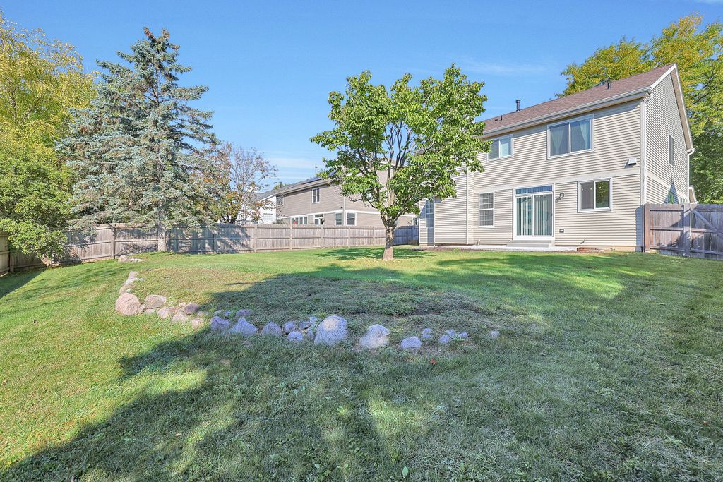 This gorgeous modern house is ready for you to move-in and enjoy! Over 65k in improvements in 2024-25 including brand new hardwood floors, 3 new bathrooms, fresh paint and more! Soaring full of light two-story living room with large windows and new hardwood floors welcomes you home. Walk through the foyer to the light, bright and updated kitchen that flows into the family room with a fireplace and a tranquil view of the huge backyard with a brand new patio. The newly redone stairs take you upstairs to the primary suite featuring vaulted ceilings, new floors, a walk-in closet and a beautiful new master bathroom. Three additional bedrooms, all with new floors and paint, and a second picture perfect bathroom complete the second floor. Step outside through the sliders and into your own private retreat: a large fenced-in yard with a brand new patio ready for relaxation, play or entertainment. The just rebuilt with a high-end insulation and bamboo floors finished basement provides additional living space for any needs you have in mind, an office, a media room, an entertainment space etc. And if you still need more storage room, there is a large crawl space. Vernon Hills Dist. 73 elementary schools, easy access to walking and bike trails and a short distance to Metra. This house can be yours!