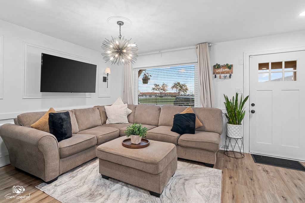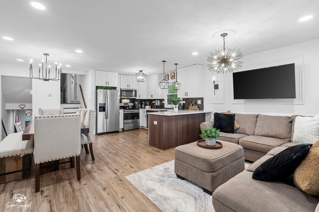 Step inside this stunningly renovated split-level home that's sure to impress with its modern curb appeal! Bright, open, and welcoming, this 3-bedroom, 2-bath beauty offers a seamless open-concept design where the living room, kitchen, and dining area flow perfectly together. Custom trim work, elegant features, upgraded lighting, and unique design touches make this home truly one-of-a-kind. Upstairs, you'll find three spacious bedrooms and a full bath. Downstairs, enjoy a show-stopping electric fireplace and TV feature wall with ambient LED lighting-perfect for relaxing or entertaining. The lower level also includes a second full bath and laundry room for added convenience. Step outside to your private backyard oasis, complete with a privacy fence and deck off the garage-ideal for grilling, gatherings, or simply unwinding. This move-in-ready home has it all and is waiting for you to make it your own!