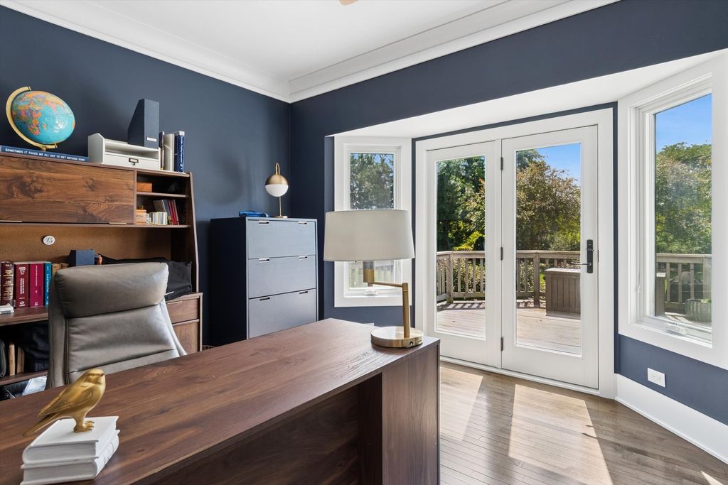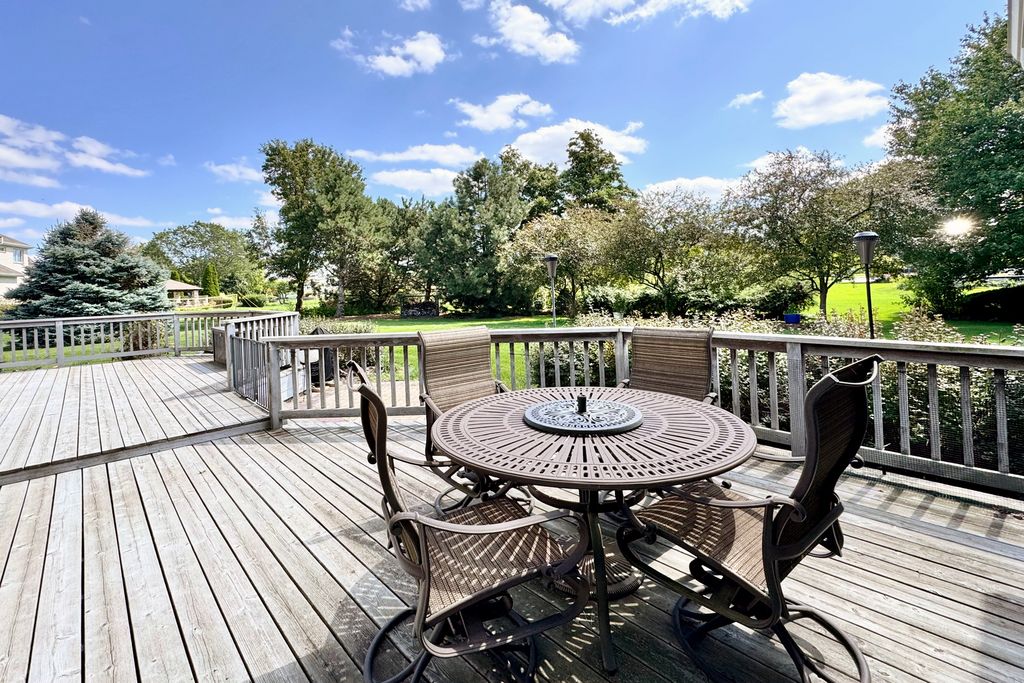 Welcome Home! Set on almost full acre in the highly coveted Tamarack Fairways community and within the nationally recognized Neuqua Valley High School District 204, this exquisite residence masterfully blends timeless elegance, modern updates, and space to bring your personal vision to life. From the moment you arrive, the home makes a lasting impression. A welcoming two-story foyer showcases striking herringbone-pattern custom tile and a redesigned staircase, leading into sun-filled living and dining rooms framed by oversized windows. Rich hardwood floors, custom millwork throughout first floor, and contemporary designer chandeliers set a tone of understated luxury throughout. At the heart of the home, the chef's kitchen is a true showpiece. Outfitted with premium Wolf and Sub-Zero appliances, quartz countertops, custom cabinetry, a built-in pantry, and large island with seating that flows seamlessly into the breakfast area. From here, enjoy views of the inviting family room, bathed in natural light from skylights and featuring a perfectly positioned wet bar and a charming brick fireplace. This opens into a sunlit all-season room where striking black French doors create a bold contrast against the tiled floor and lead out to an expansive deck, an ideal setting for both everyday living and effortless entertaining. For added convenience, the private executive office also offers deck access, perfect for refreshing breaks, while a full bath with walk-in shower enhances the flexibility of the main level. Ascend upstairs to the primary suite, bathed in natural light from skylights, featuring a private sitting area and abundant space to craft your dream retreat, whether a spa-inspired ensuite, an expansive walk-in closet, or both! Additional bedrooms offer generous proportions with walk-in closets, while the hall bath, also illuminated by a skylight, provides an ideal canvas for personalized customization. Expanding the living space is the finished lower level with a custom bar, recreation area, and room for a home gym, theater, or game room. With Perma-seal protection, dual sump pumps, and battery backup, the basement offers peace of mind along with endless versatility. Step outside to a professionally landscaped yard complete with an in-ground sprinkler system, expansive cedar deck, and an attached three-car side-load garage elevating the home's appeal. All just steps from Tamarack Golf Club, Commissioners Park, libraries, and top-rated schools, with easy access to premier shopping, dining, the Route 59 Metra station, and major highways, this home offers the perfect balance of elegance, comfort, and convenience. Newer: windows, roof, gutters, and sliding doors (2021), Kitchen (2022) The second level hardwood floors (2023), Washer and dryer (2024).