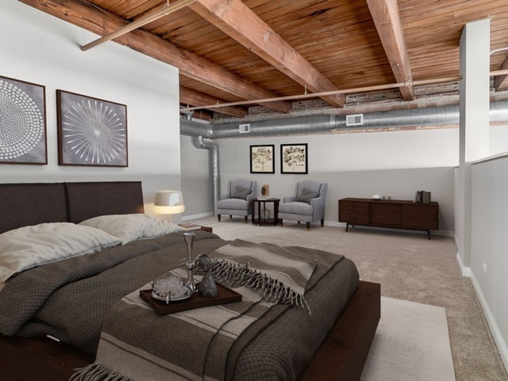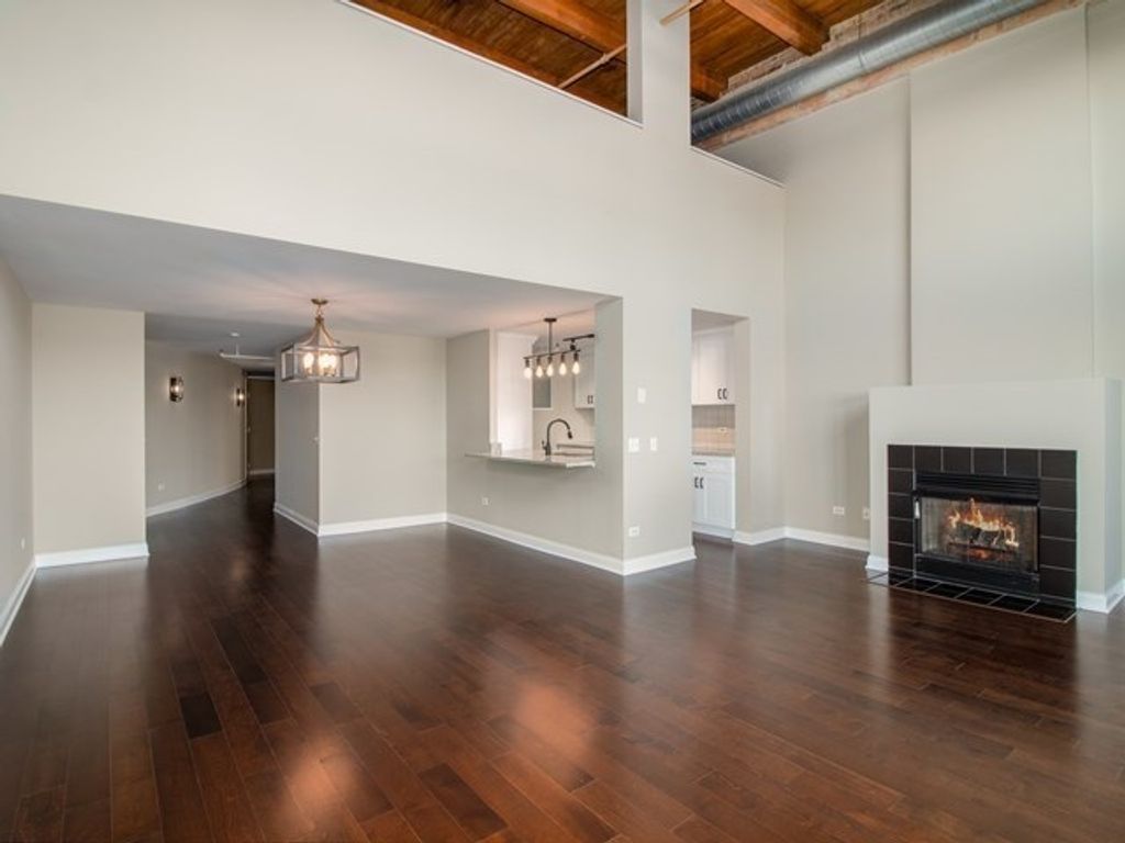 Recently remodeled - 2 story unit @ Bronzeville Lofts! New kitchen, new bathrooms! New flooring and lighting throughout! Includes 2 bedrooms, 2 bathrooms, in-unit laundry, fireplace and private balcony with skyline view!! Features gorgeous exposed brick, 2 story living room, breakfast bar off kitchen, tons of natural light, rustic timber ceiling and exposed beams throughout! One exterior parking space included! Building has new roof. Conveniently located, close to lake Michigan, expressway, Lake Shore Drive, Green Line, Metra and South Loop. Building is pet friendly. Sold as-is.