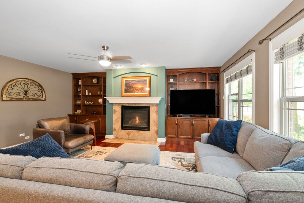 COME TAKE A LOOK AT THIS AMAZING HOME. THE OWNERS HAVE MADE MANY ADDITIONS FOR YOU TO ENJOY. 4-5 BEDROOMS, 4 BATHS, A FINISHED BASEMENT & A BACKYARD PARADISE SECOND TO NONE.MANY ADDED TOUCHES TO THIS HOME, STARTING OUT WITH THE TEARDROP STONE BRICKWORK, THE COVERED FRONT PORCH, THE CONCRETE DRIVEWAY, & PROFESSIONAL LANDSCAPING. ENTER THE HOME THRU THE TWO STORY FOYER, WITH A BEAUTIFUL LIGHTED CHANDELIER HANGING OVER THE CHERRY WOOD FLOORS WITH A STONE INLAY, THE LIVING ROOM HAS EYE CATCHING WAINSCOTING UP TO THE CUSTOM CHAIRRAIL, & SOLID PANEL DOORS WITH WHITE TRIM THRUOUT. THE HUGE EAT IN KITCHEN HAS GORGEOUS, LIGHT COLORED GRANITE COUNTERTOPS WITH CUSTOM CABINETS, A SIT AT PENINSULA & A SEPARATE WALK-IN PANTRY. THE EAT-IN AREA SEPARATES THE FAMILY ROOM FROM THE KITCHEN WITH HEARTSTOPPING VIEWS OF THE OVERSIZED BACKYARD & OPEN AREA WITH DEER SIGHTINGS.THE BEAUTIFUL HARDWOOD FLOORS CONTINUE INTO THE FAMILY ROOM WITH AN ALL ENCLOSED & SAFE FIREPLACE WITH CUSTOM BUILT-IN SHELVES ON BOTH SIDES.THE MAIN LEVEL ALSO HAS A BATHROOM & LAUNDRY ROOM.UPSTAIRS YOU WILL FIND A HUGE LOFT AREA SUITABLE FOR ANOTHER BEDROOM,TWO BEDROOMS WITH HUGE CLOSETS,CEILING FANS & A MASSIVE PRIMARY BEDROOM WITH TRAY CEILING,WALK-IN CLOSET & YOUR OWN PRIVATE BATH. THE BASEMENT IS FINISHED WITH A BAR FOR ENTERTAINING, A NICE SITTING AREA,A FULL BATH & A BEDROOM WITH A WALK-IN CLOSET OR BONUS ROOM.THE BACKYARD WILL BRING MUCH SUMMER ENJOYMENT WITH AN ALL BRICK PAVER PATIO, A SEPARATE AREA WIRED FOR A HOT TUB, A BARBEQUE AREA WITH A NATURAL GAS GRILL & BAR AREA, A FIREPIT FOR THOSE CHILLY NIGHTS & OUT THE REAR GATE TO THE OPEN AREA,YOU HAVE A PARK & THE OLD PLANK TRAIL WALKING OR RIDING PATH TO DOWNTOWN FRANKFORTS BEST RESTAURANTS,EVENTS & FESTIVALS.THIS HOME HAS ALOT TO OFFER YOU & YOUR FAMILY, BRING THEM BY TODAY.