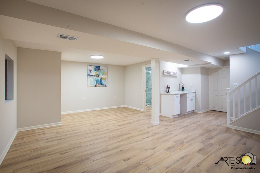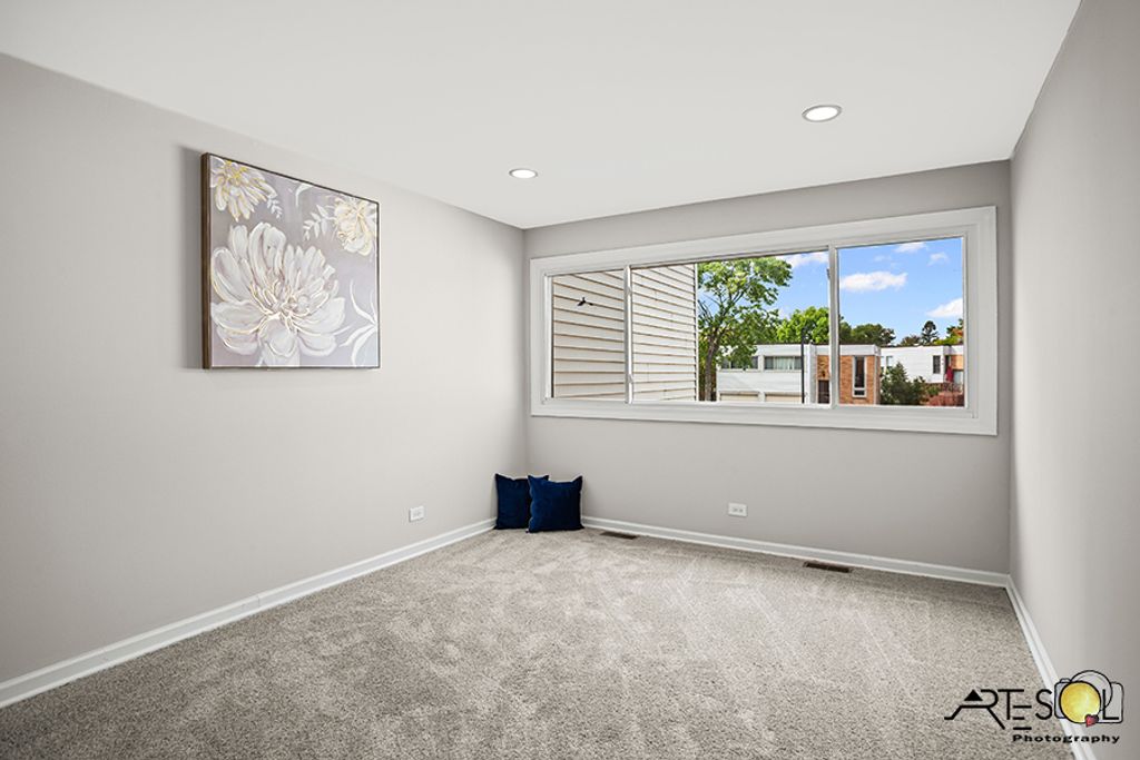 Move-in ready one of a kind corner unit, private entry townhome with a bigger footprint than some single-family homes in a quiet tree-lined community. Completely updated, full of natural light and open concept floor plan allows for comfortable family living and easy entertainment during the holidays. Main floor features open concept kitchen with white cabinets, brand new appliances, quartz countertops and free-standing sit around island for additional sitting area or counter space. Kitchen opens to the living room featuring a gas fireplace and dining room features sliding door out unto a private patio. Main floor also has access to the attached garage and fully updated half bath. Step upstairs and find 3 spacious bedrooms with an updated double vanity bathroom. Master bedroom features built in closet storage. Two additional bedrooms have very spacious closets. For additional comfort there is huge walk-in closet off the hall with built in high end custom closet storage solution. Fully finished basement with another full updated bath and wine wet bar area provides an alternate entertainment option on those rainy or cold days. Very easy showing, painted throughout, new floors throughout, updated throughout. New mechanicals. This townhome is located steps from the community pool and clubhouse. Plenty of guest parking in addition to the attached garage. Tucked away in a serene community but only steps to shopping and transportation. Excellent schools.