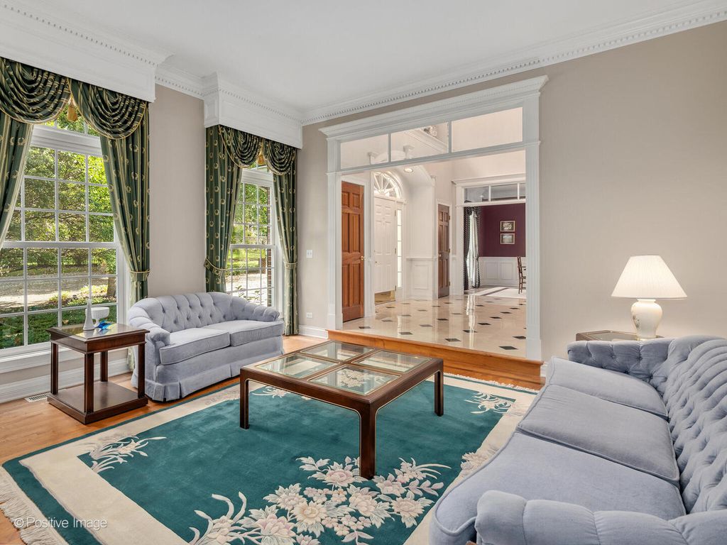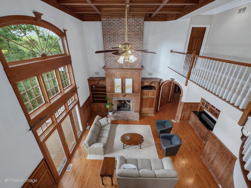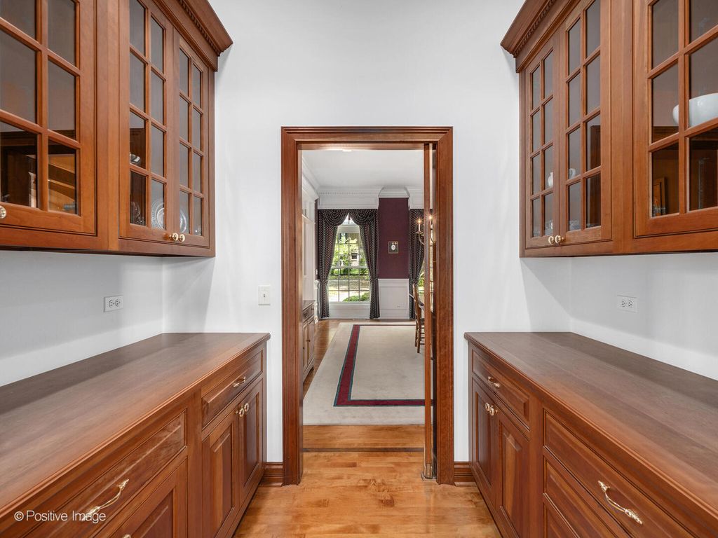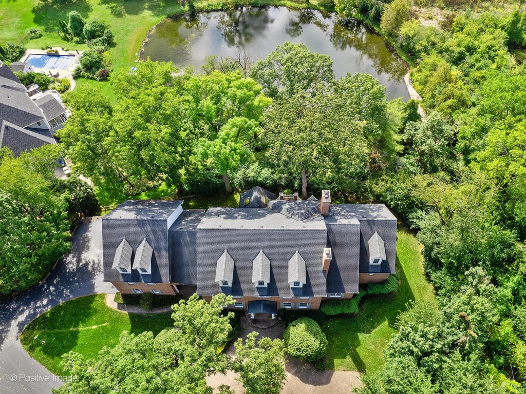 This elegant five-bedroom custom home blends classic craftsmanship with modern functionality. At the front, generous formal living and dining rooms set the tone for refined entertaining. The back of the home opens to a chef's kitchen with island, walk-in pantry, and butler's pantry, seamlessly connected to the breakfast room and two-story family room with gorgeous coffered ceiling, gas fireplace and custom cherry built-ins. Walls of windows frame serene pond and river views, extending to the Trex deck and vaulted screened porch - perfect for year-round enjoyment. A true first-floor office sits beside the spacious primary suite, a private retreat with wooded and water vistas. Secondary front entrance leads to multiple mudroom closets and an expansive laundry room, keeping daily life organized and discreet. Upstairs, three large bedrooms each feature walk-in closets and private en suites. Two additional vaulted unfinished spaces - totaling 1,700 sq ft - offer endless potential for a nanny suite, in-law retreat, or creative expansion. Finished walkout lower level impresses with rich millwork, a full bar, pool table nook, two-sided fireplace, expansive rec room, guest bedroom with full bath, and French doors to a paver patio for seamless indoor-outdoor entertaining. Additional highlights include a three-car attached garage, timeless all-brick exterior, and coveted District 203 schools. Ideally located on a quiet cul-de-sac just minutes from downtown Naperville, the Riverwalk, shopping, and dining - this home offers elegance, versatility, and an unparalleled setting.