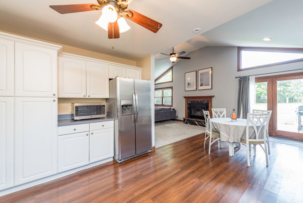 Spacious and beautifully maintained 3 bed, 2 bath home on an oversized 0.69-acre lot in the heart of Gurnee. This home features vaulted ceilings, a striking black marble fireplace, and abundant natural light through large windows and transoms. The open-concept kitchen offers white cabinetry, stainless steel appliances, and ample counter space. Enjoy multiple living areas, including a recreational room and dining spaces perfect for entertaining. Step out onto the expansive deck overlooking a large backyard, ideal for summer BBQs, gatherings, or simply relaxing. Features an oversized (25x38) 4+ attached heated garage, a shed for storage AND a 26x30.2 Heated pole barn (additional structure). Sitting in a Peaceful neighborhood, close to shopping, dining, schools, and I-94 access. A must-see!