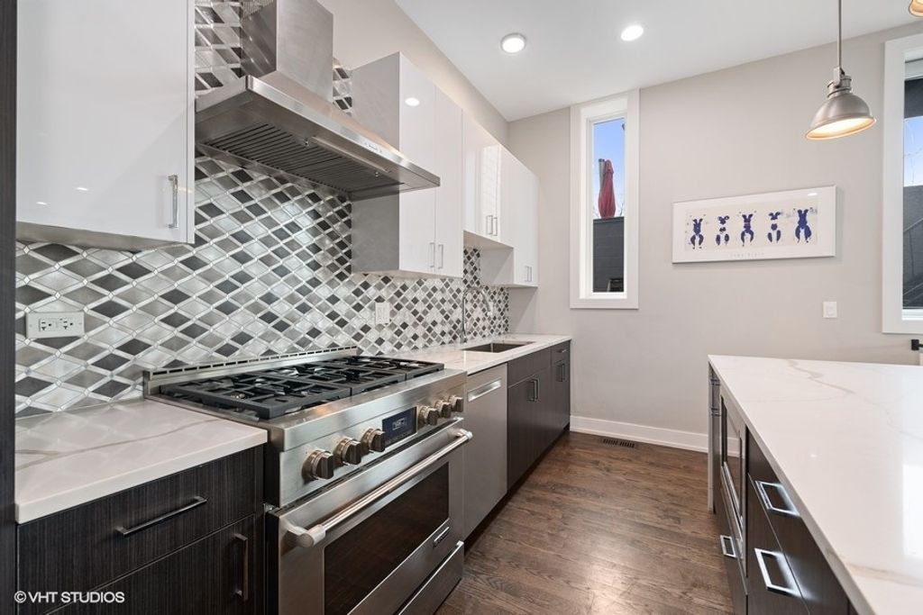 If space and location are important, welcome home! Almost new construction on an extra wide, corner lot, overlooking Holstein Park. Upon entering the unit, you're welcomed by a huge living room/dining room/kitchen combo with floor to ceiling windows and plenty of natural light. Main level also includes half bath and coat closet. This 3 bedroom/2.1 bath duplex features gorgeous oak hardwood floors, contemporary chef's kitchen with all stainless steel appliances, 6 burner oven range, quartz countertops with full backsplash and huge island to entertain. Massive primary suite with spa-level bath includes double vanity, rainshower, stacked stone surround and oversized shower. Another 2 bedrooms and full bath on the lower level. Unit also boasts Crate and Barrel storage/liquor cabinets, 6k in custom blinds, Nest thermostat and side by side washer/dryer. Three large decks for entertaining, two off of the living space and one private garage roof deck that was just built out above your own 2 car garage. Holstein Park sits on 3.25 acres with a fieldhouse that's equipped with two gymnasiums and assembly hall. Outside, the park offers a swimming pool with a wading pool, a senior baseball field, a softball field, a volleyball court, and a playground with a spray water feature. All this only a 10 minute walk to the Western Ave. Blue Line stop, 1 minute drive to the Kennedy expressway, and 5 minute drive to the Clybourn Metra stop. Steps to all that Bucktown, Logan Square and Wicker Park has to offer. Excellent schools: Elementary at Pulaski International, Junior High at Pulaski International & High School at Clemente Community Academy. Welcome home. O.H. 10/5 from 11-1.