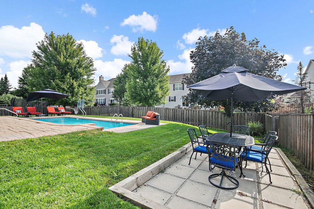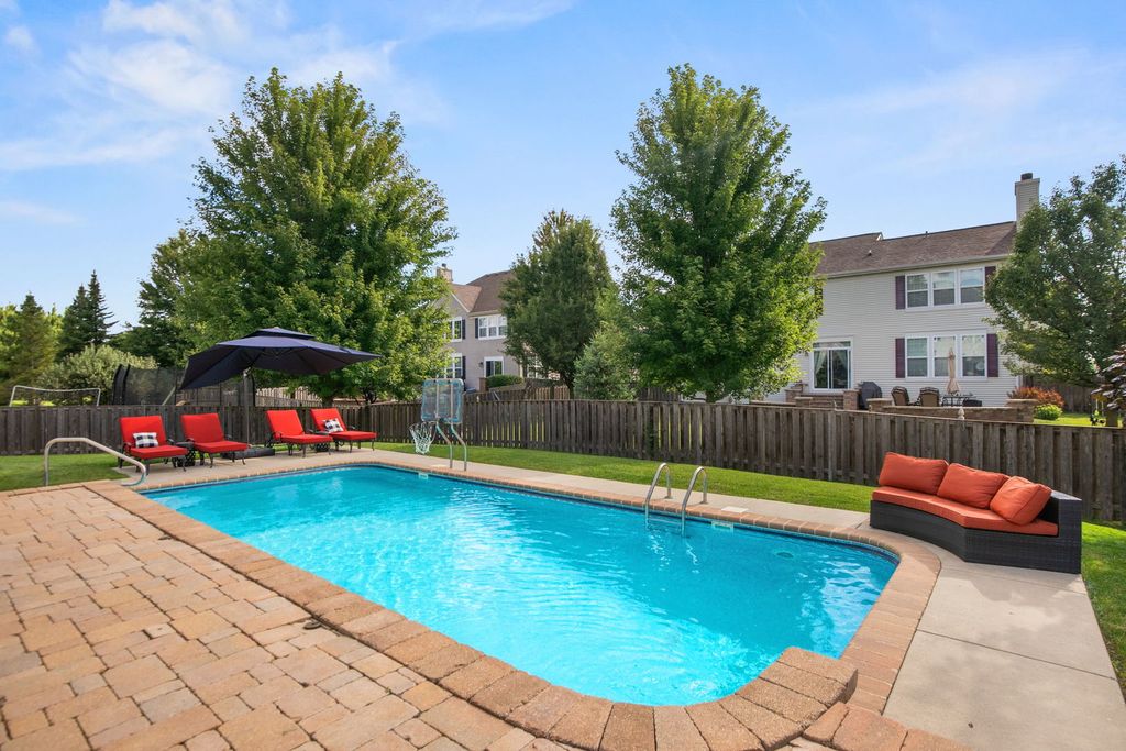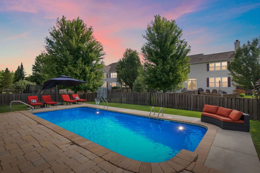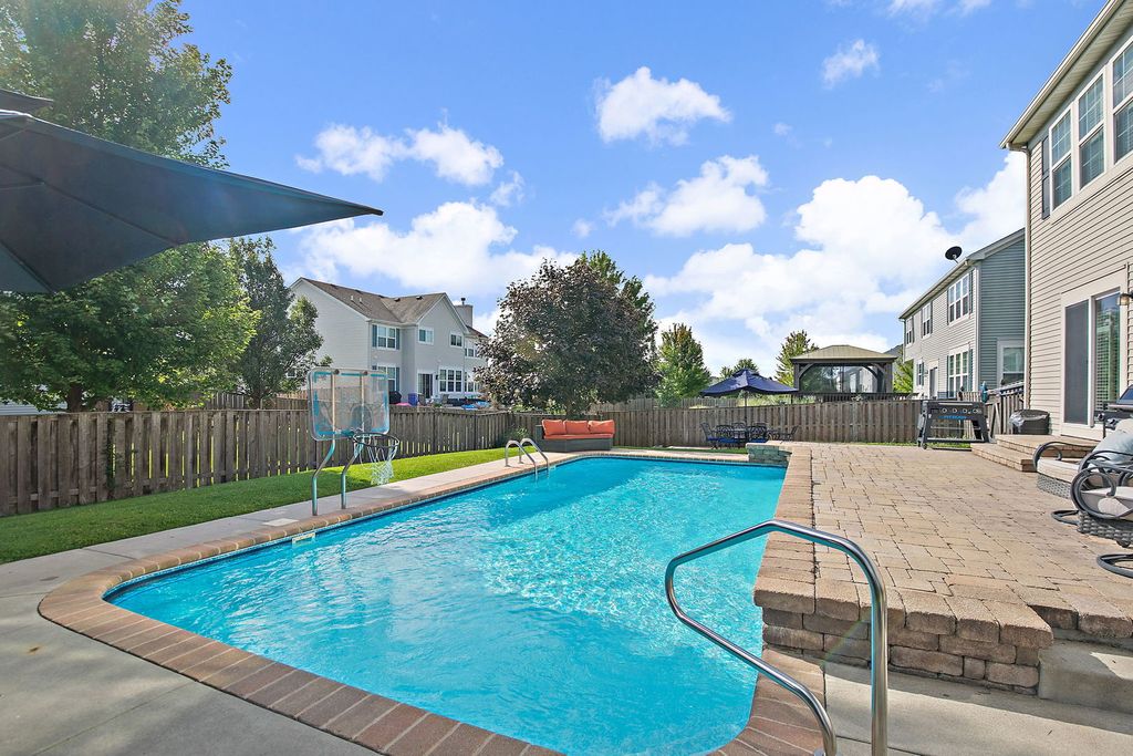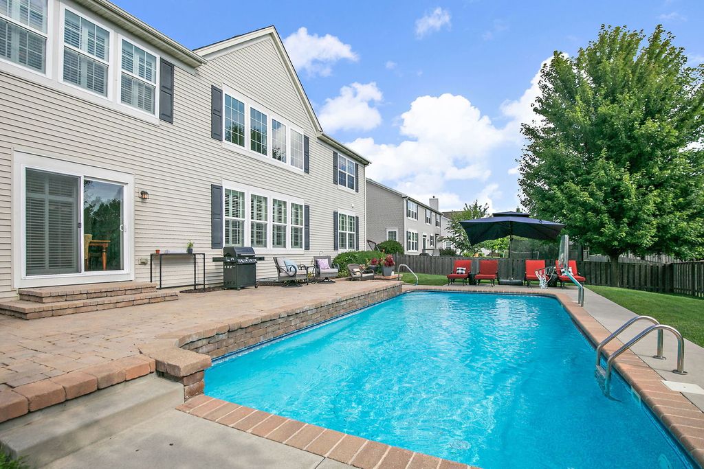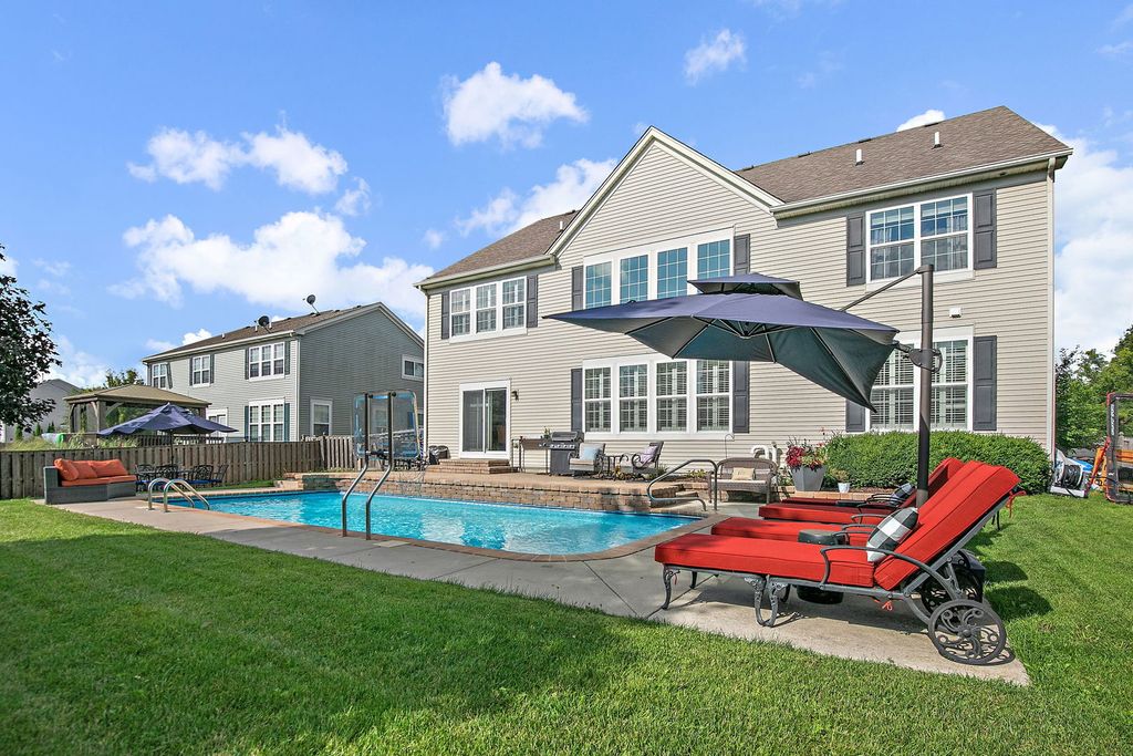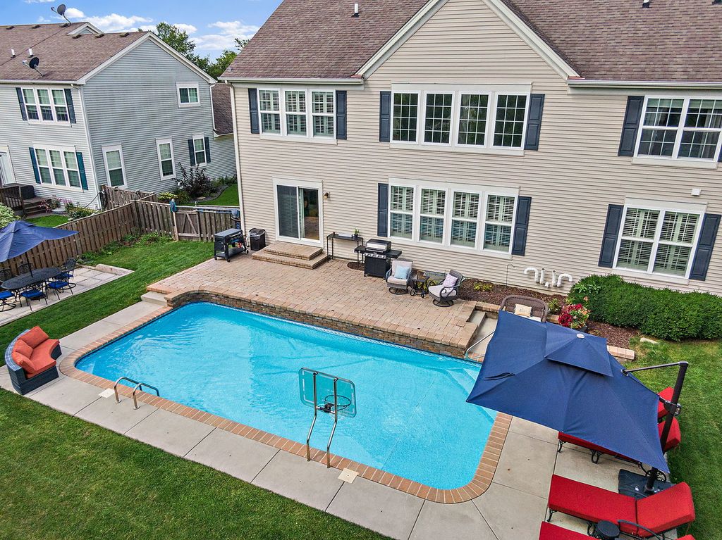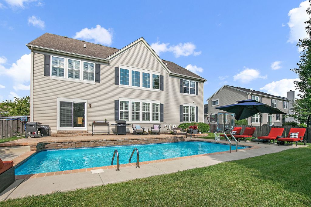 Discover luxurious, hotel-style living that's the perfect blend of elegance and comfort with close proximity to Metra, shopping, schools and I-90 to whiz you to OHare quickly. This impressive and freshly painted 5-bedroom, 4-bathroom home spans 3,861 sq ft (with another 1883 sq ft of potential living space in the basement), situated on a generous, fenced square foot lot. ***** What really makes this resort-style living is the impressive and low maintenance 32'x15' saltwater pool. It has water feature jets, an Omnilogic control panel to read chemicals from an app in your phone and sense and dispense chemicals as needed. The multiple patios give you TONS of space for outdoor, al fresco dining, lounge chairs to relax and conversation areas to relax! This will be the back yard of your dreams! ***** Upon entering, you're greeted by a spacious foyer leading into open living areas. The impressive 2 story foyer and it's hardwood floors will impress even the fussiest of guests. The Living Room provides a quiet retreat from work, and the adjacent Dining Room can be the spot for your formal meals! The family room, with its floor-to-ceiling windows and cozy fireplace, invites relaxation. ***** But the REAL GEM of the main floor is the Kitchen that was updated in 2021 with today's most popular features: two tone cabinets; Quartz counters; stainless Bosch appliances; a feature-worth range hood; 2 islands with seating; a large eat in space. ***** There's plenty of bedrooms on all levels. The first-floor bedroom is versatile for guests or additional workspace, complemented by a convenient full bath next door. Upstairs, unwind in the luxurious Primary suite, complete with a walk-in closet and private Primary bath with dual sinks and separate tub and shower. Note the in-home office area in the Master that could be used for working from home or the as a crafting or hobby desk. There are 3 more spacious bedrooms....one is a princess suite with it's own back and the 2 other bedrooms are connected by a Jack-and-Jill bathroom! ***** The expansive basement is mostly unfinished, but does include a finished room that could be an office or a gamers retreat or a musicians quiet paradise. There's TONS of storage in the basement or space to expand your home's equity! Add to that zoned heating and air conditioning and 2 new air conditioners in 2024 and 2025!!!***** But let's add into all this....custom millwork, plantation shutters, wrought iron railings AND within walking distance to the splash pad, park, pavilion, festivals, walking paths, Dunkin' and restaurants!!! This home is the essence of modern living, designed for those who appreciate quality and sophistication. Make it yours and enjoy endless possibilities in this vibrant community. COME SOON!!!