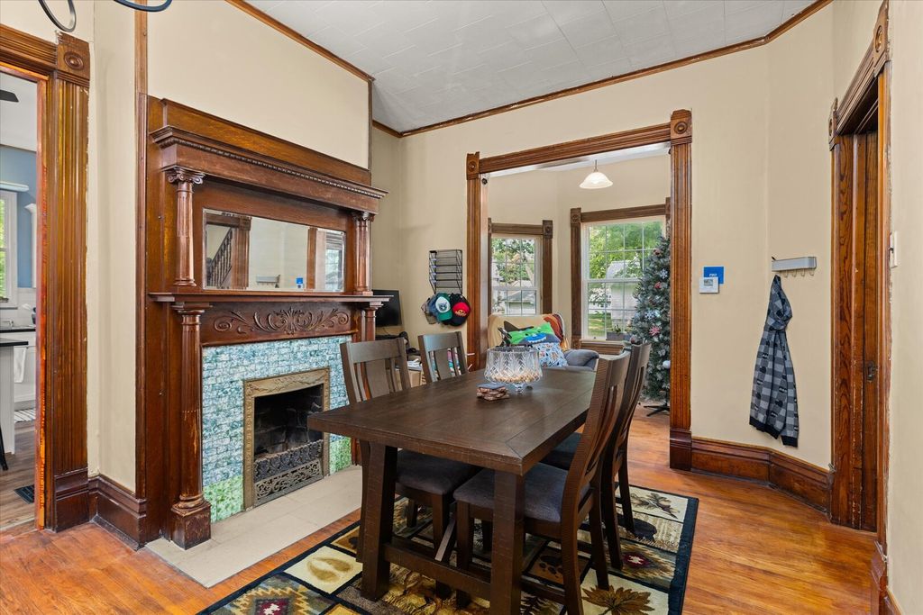 **Beautifully Updated 2-Story Home with Unique Outdoor Space** This spacious 2-story home has been thoughtfully updated inside and out, blending modern convenience with classic charm. Exterior upgrades include newer siding, windows, furnace, and central air conditioning-ensuring comfort and efficiency year-round. Step out back to the deck, artfully constructed around a mature tree, creating a natural and inviting outdoor living space. Two staircases lead you to the main level, where you'll find warm hardwood floors throughout the living areas. The living room, dining room (with a cozy fireplace), and a versatile den provide plenty of space to relax or entertain. The updated kitchen features modern finishes, and a second full bathroom with a walk-in shower adds convenience. Inside, the upper-level features four generously sized bedrooms, all with fresh paint and easy-care laminate flooring. A beautifully updated full bathroom includes a refinished clawfoot tub that adds a touch of vintage elegance. This home combines thoughtful renovations with unique features, making it a standout property you won't want to miss!
