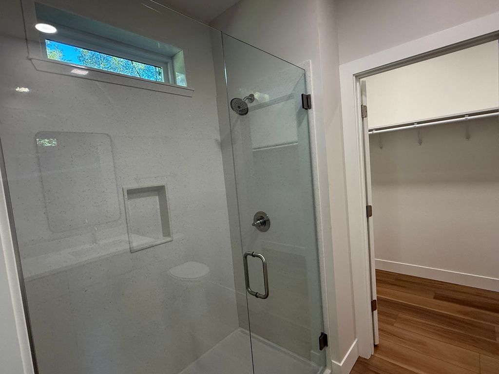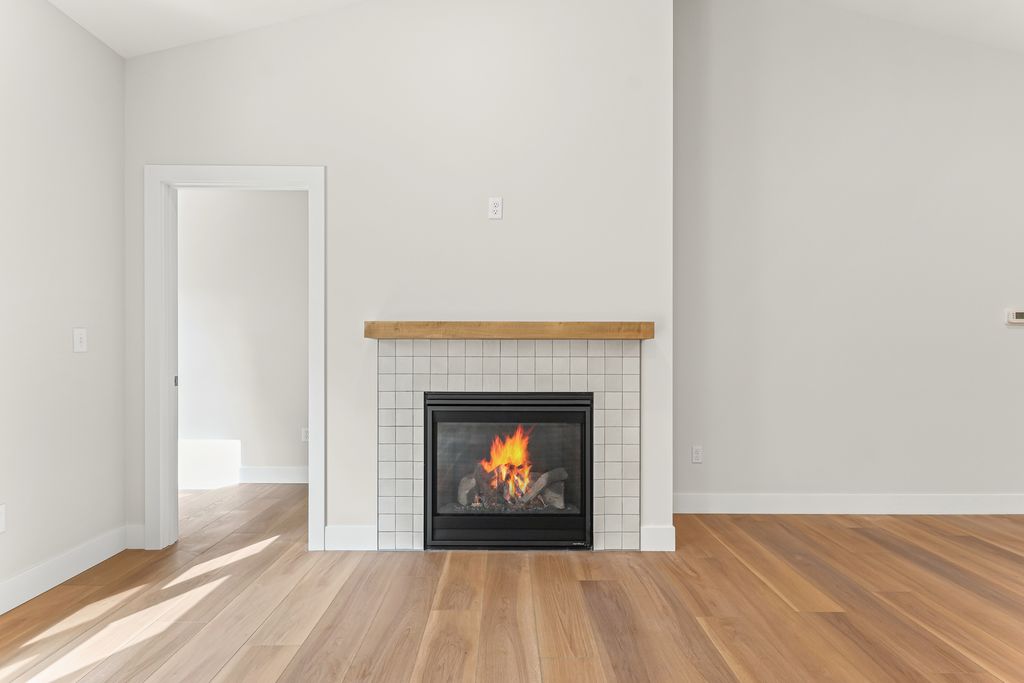 Stunning new construction zero lot line home tucked in a secluded University Down's neighborhood street and surrounded by beautiful mature trees. Excellent floor plan with 3 bedrooms 2 full bathrooms with 9' ceilings throughout and a vaulted ceiling open concept living space. The living features a cozy gas log fireplace and backs up to private yard and patio space. In the kitchen is custom hand built cabinetry with quartz countertops and stainless steel appliances. Two bedrooms share a hall bathroom. The master bedroom suite features a walk in Onyx shower with a window and glass door. Through the bathroom is a giant walk-in closet. Low maintenance exterior with high quality roof shingles, vinyl siding and Andersen windows. The yard has been sodded in the front and seeded on the side and back. The back patio and yard will be finished off with a privacy fence down the middle.