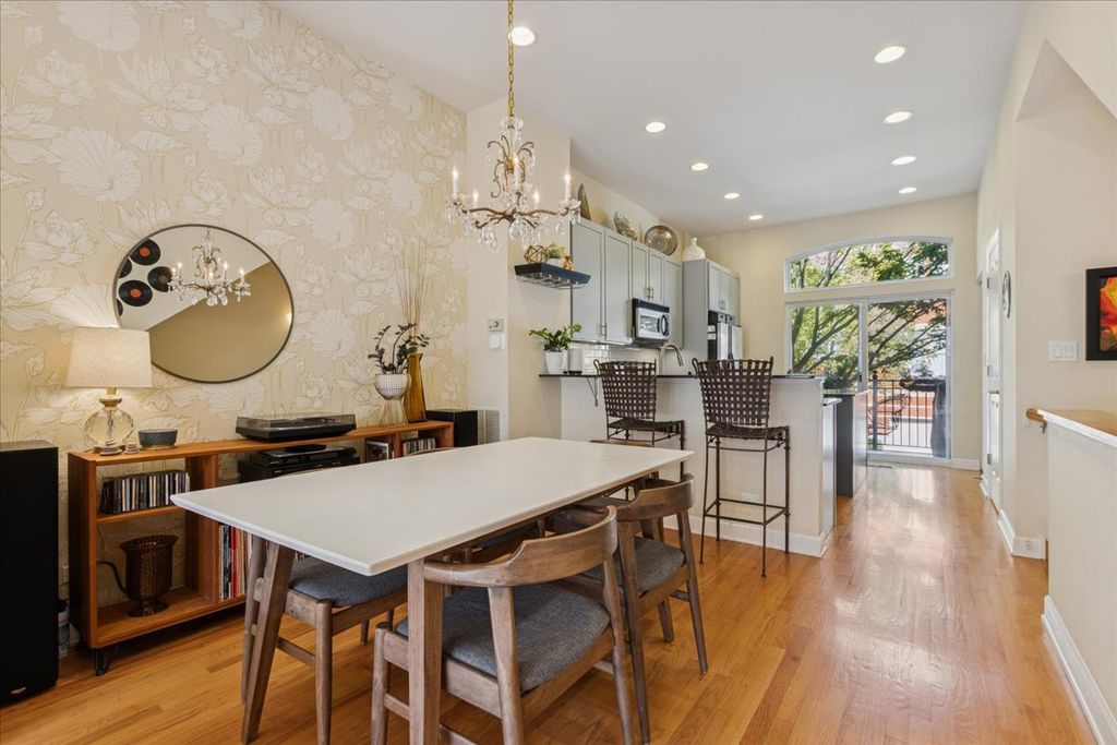 Now is your chance to own in the coveted River Park North Townhome Complex! Tucked away off the beaten path, this serene community sits right next to two parks with easy access to the 312 Trail along the river-an outdoor lover's dream. This recently updated 3 bedroom, 2.1 bath townhome is truly move-in ready, offering two outdoor spaces, a private garage, and an extra exterior parking spot. The first level greets you with a versatile office or den, perfect for working from home. Upstairs, the main living level features an open-concept design with hardwood floors throughout, a designated dining area, and a refreshed kitchen with freshly painted cabinets, modern hardware, and a newly renovated powder room. The third level, also with hardwood flooring throughout, hosts the spacious primary suite, a second bedroom, and a full bath, while the top floor opens to a flexible loft space that can be your third bedroom, second office, yoga studio, or media room. Just off this level, a generous south-facing rooftop deck invites you to entertain friends or simply unwind while watching Chicago sunsets. All of this is set in an unbeatable location-across from Horner Park with its dog park and trails, close to California Park's pool and McFetridge Sports Center, and near local favorites like Burning Bush Brewery. Commuting is simple too, with the Irving Park bus right at your doorstep and the Francisco Brown Line just a mile away.