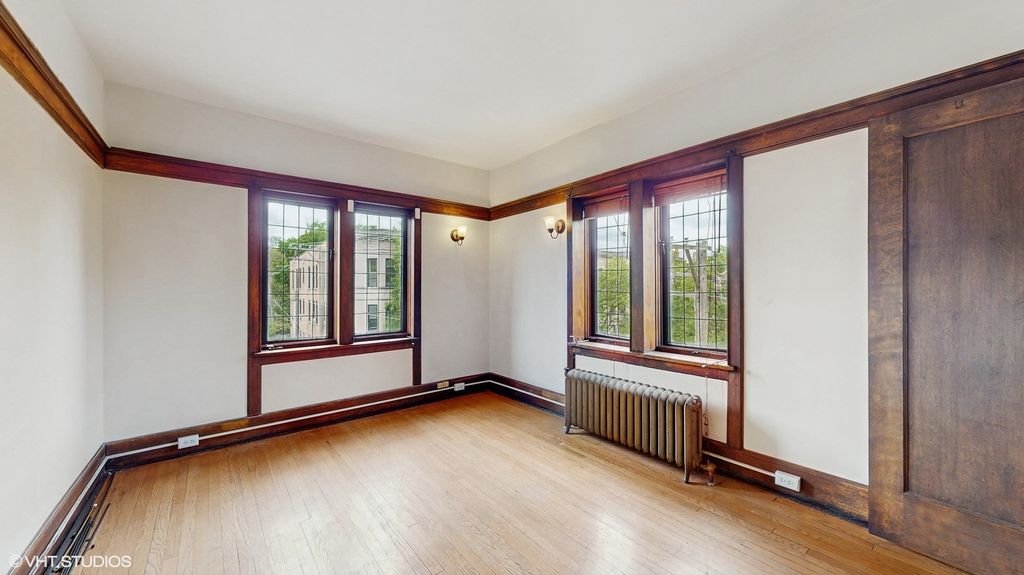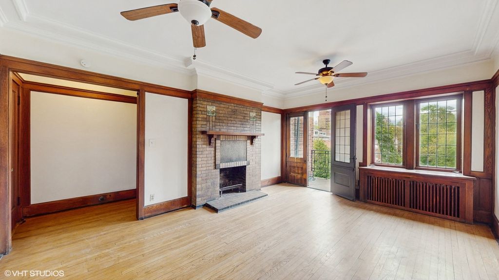We are excited to offer a wonderful two bedroom, two bath condominium located in the Mews, a prestigious association, in the heart of Hyde Park. Designed by noted Chicago architect Robert Spencer in 1914, this generously sized two bedroom, two bath unit on the third floor boasts a full dining room and a sunroom that can double as a den, study, home office or sitting room. The board in the associations allows new washers and dryers to be installed in the units, and indeed the copper piping for a washer is already installed in the kitchen.Vintage features include natural woodwork throughout, lovely built ins, hardwood floors, high ceilings, leaded glass windows and exquisite art tiles such as the tiles of old sailing vessels over the fireplace. There is a great balcony without a roof that allows for maximum sunlight and a large shared manicured back yard.Gas lights identify the association at 57th and Dorchester, a short distance to the University of Chicago, the Laboratory Schools, book stores, interesting shops and good restaurants as well as the train to the loop.