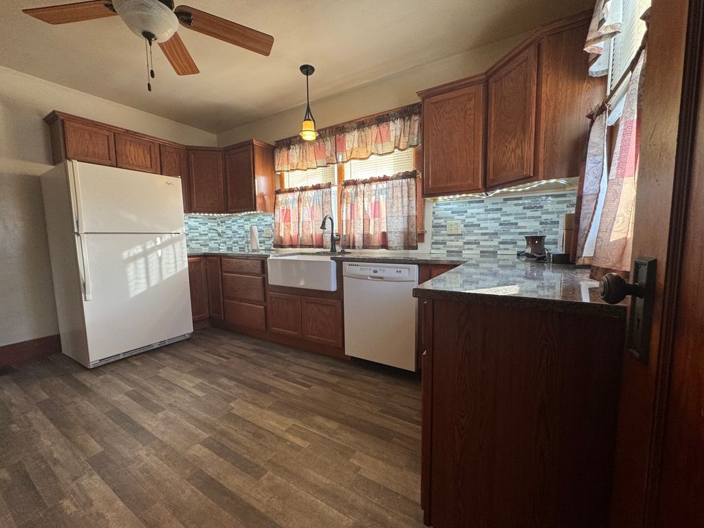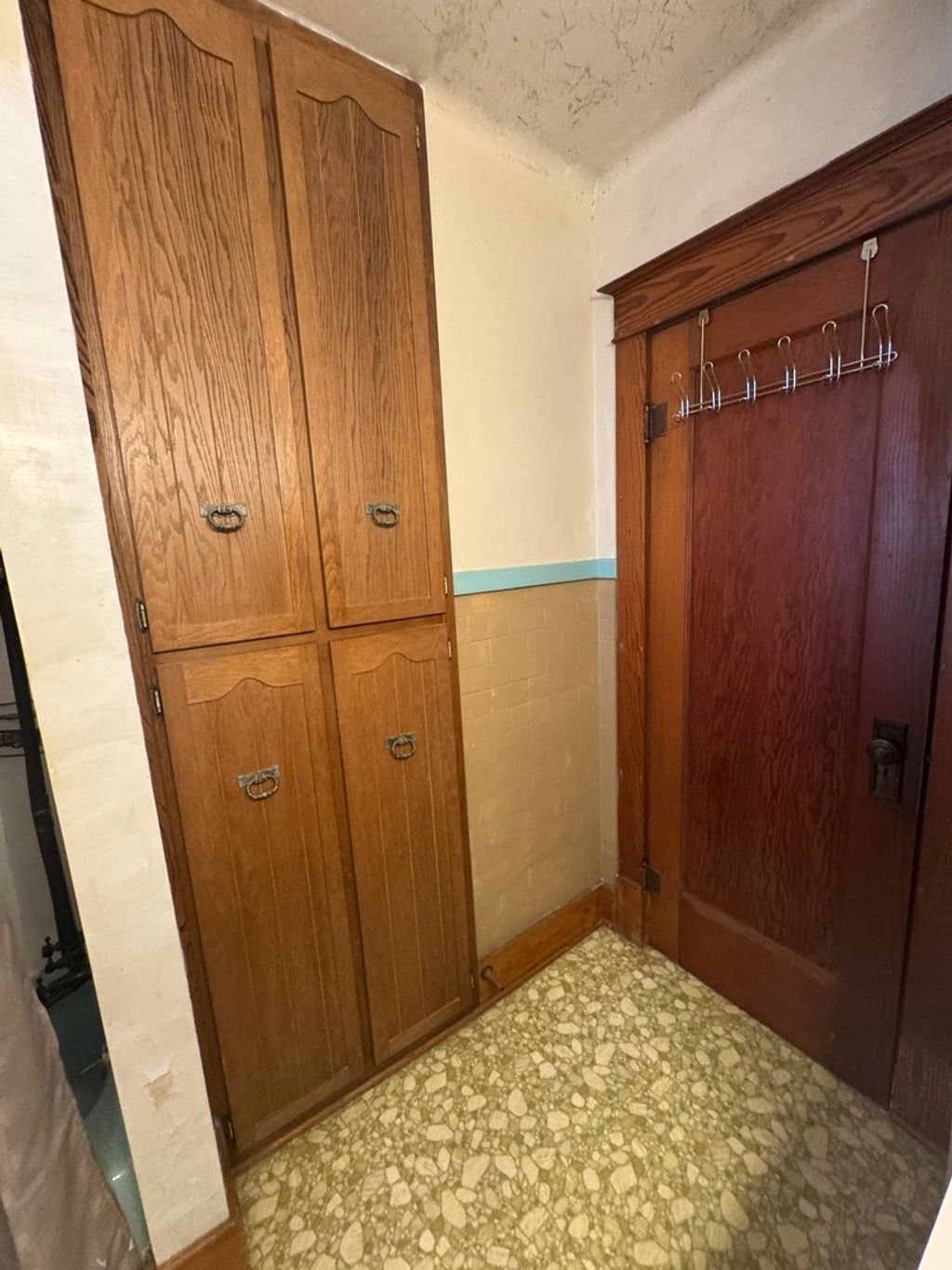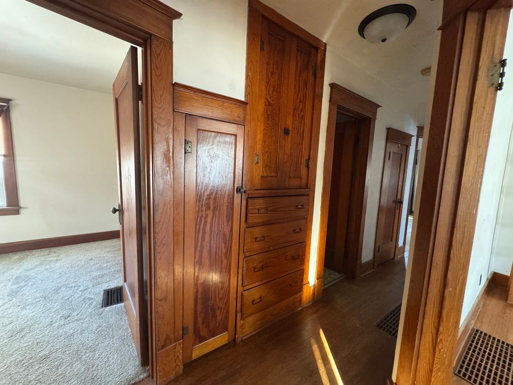 Adorable 2-bedroom home in great location near school and downtown. This house has the classic charm from the past with hardwood flooring & trim, gorgeous French Doors and amazing built in cabinetry throughout. The kitchen has been completely renovated with new flooring, lovely Schrock easy close cabinetry and quartz countertop....along with an awesome apron front, farmer-style sink. There is more room for expansion with the nice walk-up attic to either convert into living space or use for an enormous amount of storage. There is one full bath on the main floor as well as a stool, sink and a large shower with steamer in the basement. The basement also has a big laundry area with lots of storage and multiple rooms. The oversized heated one-car detached garage was expanded in 2014 to include a workshop/Man's Cave with window a/c plus TV hook up. The garage is heavily insulated with a floor drain. Many other updates include windows, updated wiring, which is ready for portable generator, HVAC in 2018, tankless water heater in 2023, Nest thermostat & Nest security camera. Budget Billing $266.00 w/heated garage. Your NEW Home Sweet Home is waiting!
