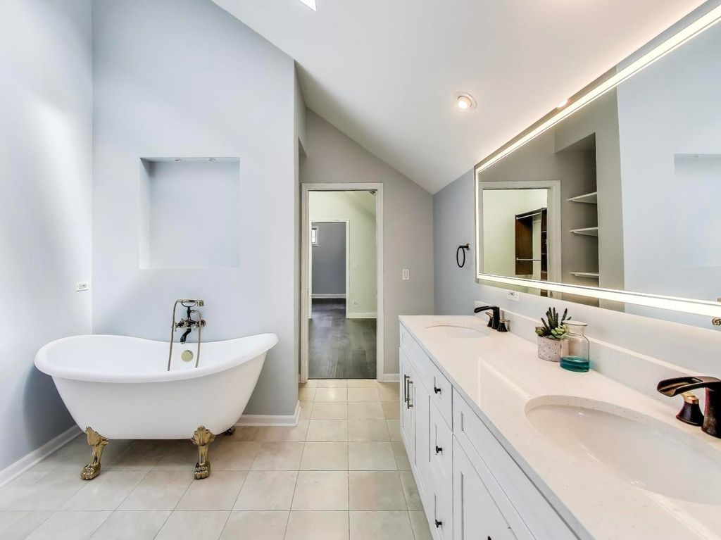 Welcome to your dream home!!! LOCATED in wonderful Glen Ellyn in the desirable Foxcroft area. You won't be disappointed with this gorgeous and spacious home with many beautiful updates, 24-foot ceilings, and large windows providing lots of natural sunlight. This home features an open floor plan, stairs with nicely painted molding, modern railings, stunning marble black floors, and two different fireplaces, one being a two-sided remote-operated fireplace that can be enjoyed from both the family room and the living room. The newly remodeled kitchen features an island and wine cooler, black granite countertops, stainless steel appliances, a walk-in pantry, and a laundry room off the kitchen with new washer and dryer. Brand new furnaces and water heater. There are 2 bedrooms located on the main floor and 2 bedrooms located on the second floor. The super spacious master bedroom has brand new wooden floors and high ceilings with space to include a working area and a large walk-in closet. The master bathroom was just updated with a new smart mirror and vanity; it also has a separate shower and a tub. The home is located near highways, restaurants, stores, and within walking distance to Lake Foxcroft Park. Bring your clients with confidence.