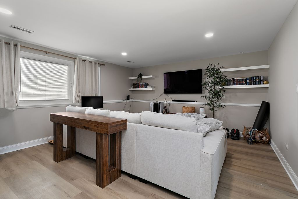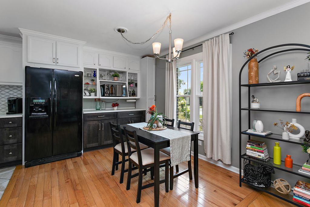 Welcome home! This beautifully updated 3-bedroom, 1.5-bath gem is completely move-in ready and designed for today's lifestyle. From the moment you step inside, you'll love the bright, open floor plan that seamlessly connects the living room, dining area, and kitchen-perfect for both everyday living and entertaining. The kitchen steals the show with its custom backsplash, stylish accent walls, and upgraded white cabinetry finished with crown molding and trim details. Plus, the added dining room cabinetry doubles as extra storage and counter space great for family gatherings and hosting. All three bedrooms are thoughtfully tucked on the same level, with the primary bedroom showcasing warm hardwood floors. Need more space? The spacious lower level delivers, complete with a walkout to the backyard. Step outside and get ready for fun! Cool off in the above-ground pool, lounge on the oversized patio, or head to the back of the yard where a cozy gathering spot awaits-complete with concrete patio and awning, just right for outdoor couches, a firepit, or evening get-togethers. A 2-car garage adds even more convenience. Best of all, this home is tucked on a quiet block yet close to shopping, schools, parks, and major highways. It's the perfect blend of comfort, style, and location-a place where lasting memories are waiting to be made. Don't wait-this one won't last long!