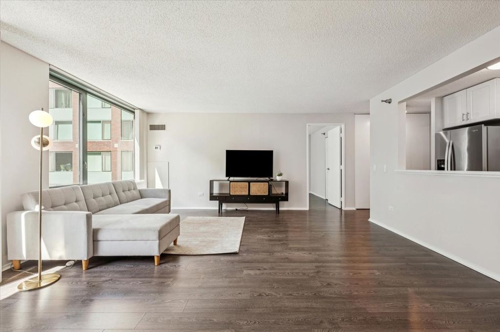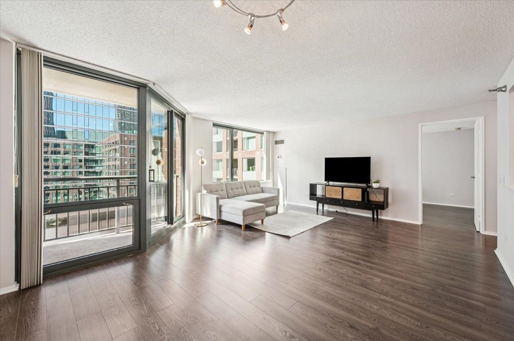 Updated & Move-In Ready in Streeterville This spacious one-bedroom condo combines style, comfort, and convenience in a prime location. The open living and dining room features a large picture window and sliding glass doors that lead to a private balcony with western views overlooking beautifully landscaped sundecks. The sleek kitchen showcases full-height white and gray cabinetry, quartz countertops, and stainless steel appliances-perfect for both cooking and entertaining. The primary suite offers a generous retreat with hardwood floors, a walk-in closet, and a large picture window. The renovated bath is designed with a quartz-topped vanity and a stone-tiled walk-in shower with glass doors. Two additional closets add to the home's abundant storage. Enjoy fresh air on your private balcony, or step out to explore everything Streeterville has to offer-Target, Whole Foods, Walgreens, the Northwestern Medical Campus, and the lakefront are just moments away. The full-amenity building features 24-hour door staff, a fitness center, sundecks with grilling stations, and a convenient parcel receiving room. Deeded Parking Space available for Purchase $35,000