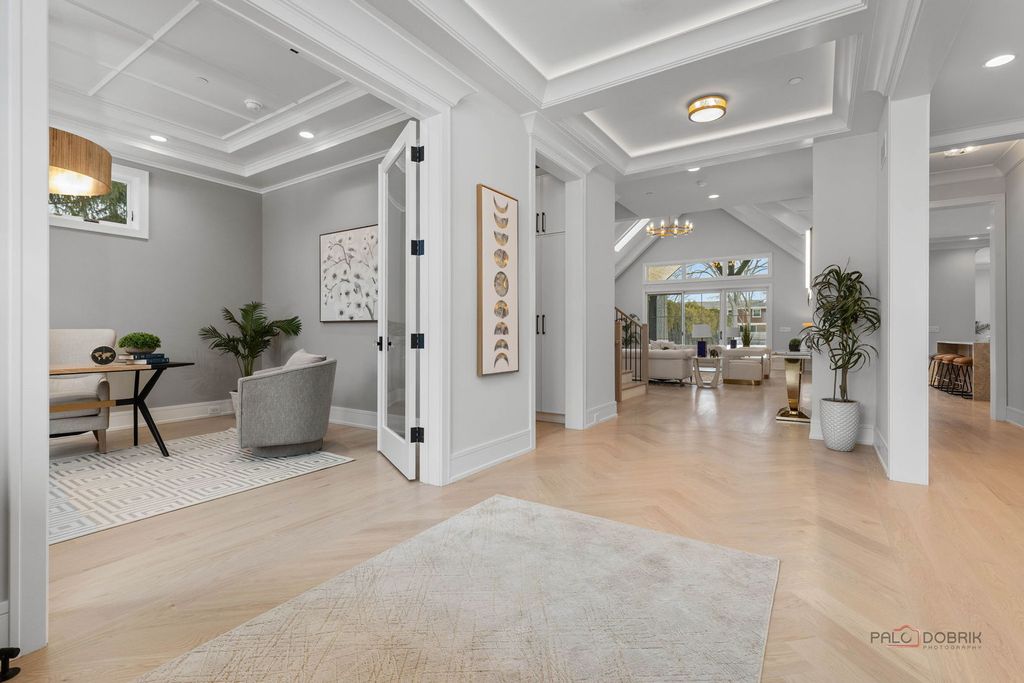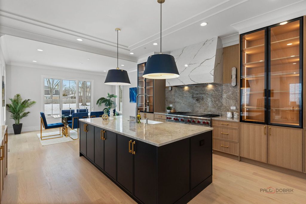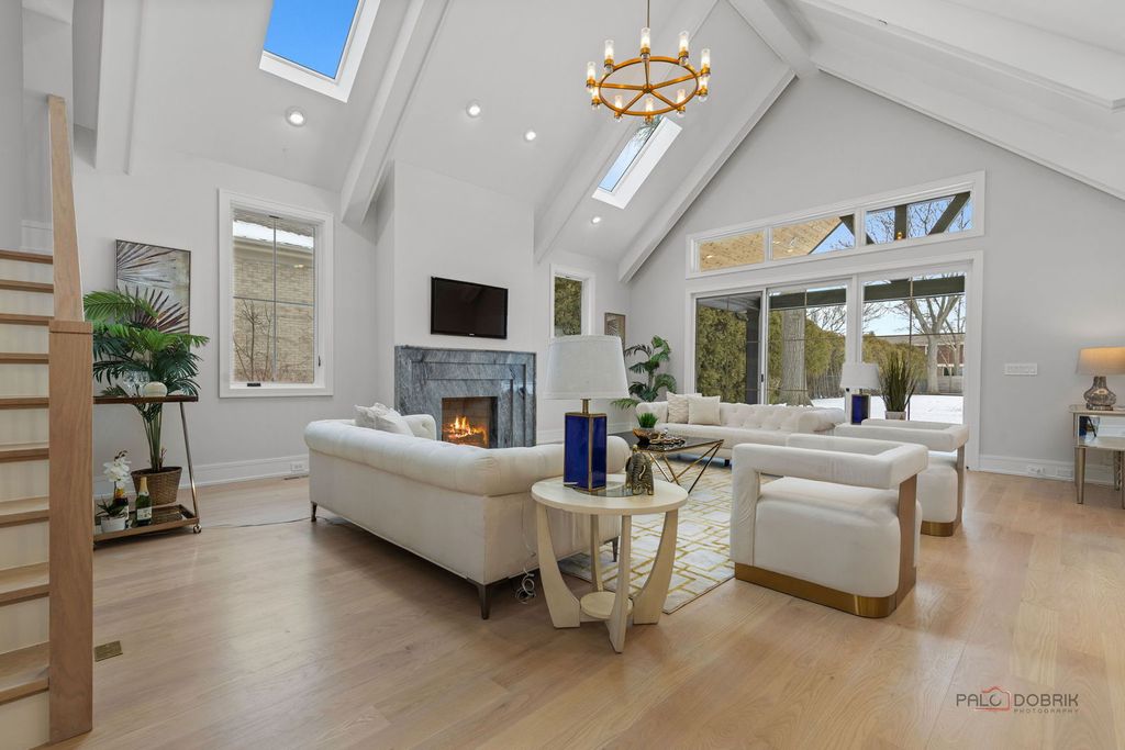 Extraordinary opportunity to own a fully finished newer Prairie-style luxury home in a prime Northbrook location, set on an exceptionally wide, beautiful street near parks, the lake, shopping, and award-winning District 27 schools. Offering nearly 9,000 SF of finished living space, this impressive residence features 6 bedrooms and 6+ baths, including 5 spacious bedroom suites on the first and second floorsa"each with its own private bath, plus 2 additional powder rooms. A main-level bedroom suite is ideal for guests or multi-generational living, and a private office makes working from home effortless. The heart of the home is a stunning chef kitchen with professional-grade Sub-Zero and Wolf appliances and two oversized islands with generous seating perfect for entertaining. The living spaces are anchored by a spectacular family room with soaring near-cathedral ceilings and large skylights that fill the home with natural light. Wide-plank hardwood floors, solid wood doors, high ceilings (~10 ft), and heated floors in every bathroom reflect exceptional craftsmanship and quality throughout. Upstairs, the luxurious primary suite includes a massive walk-in wardrobe and private balcony. The finished lower level adds incredible versatility with a 6th bedroom, full bath with steam shower, and a second fireplace. Outdoors, enjoy a covered veranda/patio with gas line for grilling and a huge deep backyard with potential for a pool, tennis court, or pickleball court. Conveniently located near 294/94