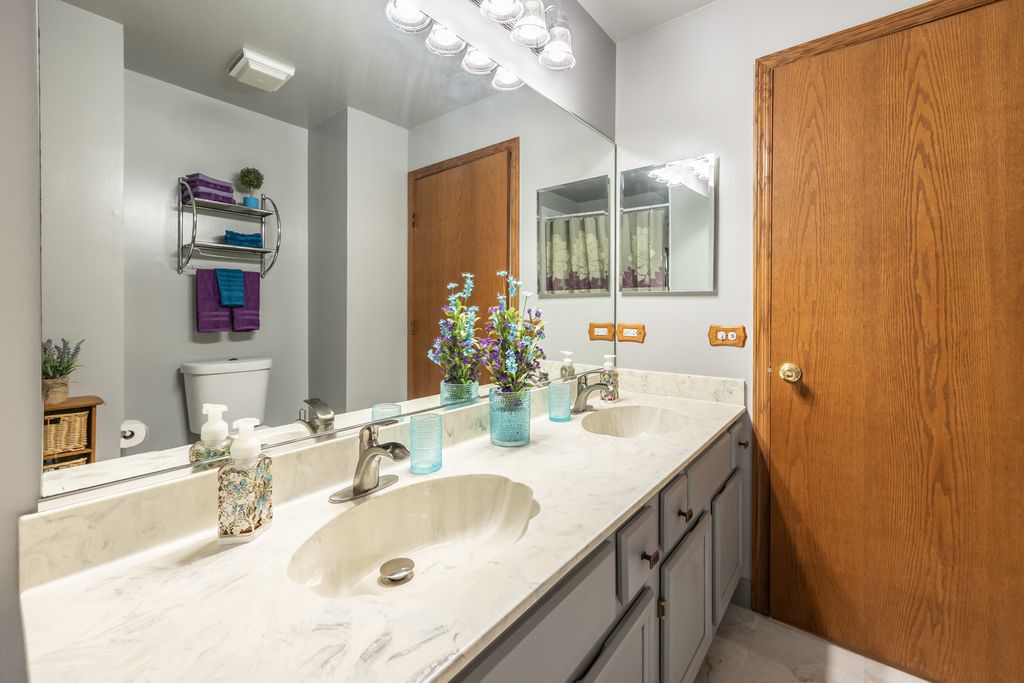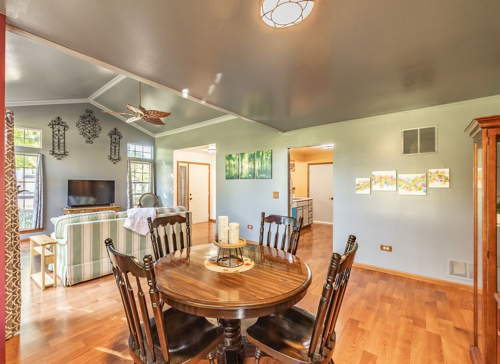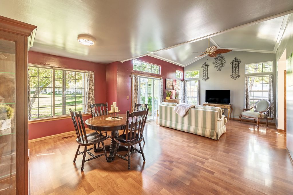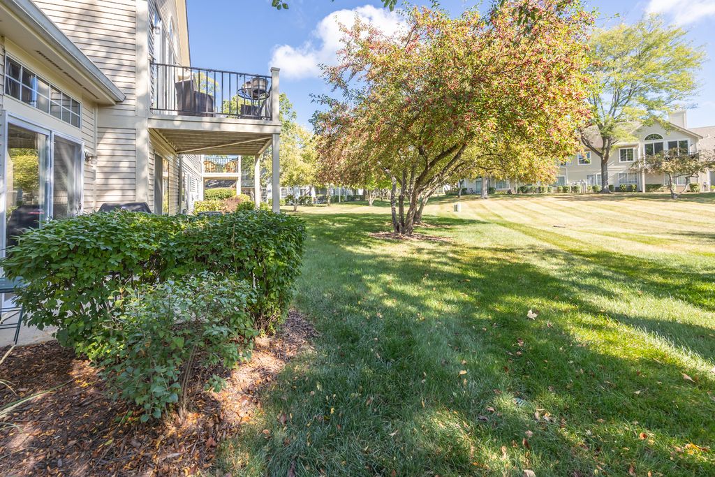 This rarely available beautiful end unit ranch is waiting for you to call home! End unit situated on a premium lot with what feels like your own yard. Use your private driveway to pull into your own 2 car garage with pull down stair, attic storage. Inside features 2 beds and 2 baths. Spacious kitchen with eat-in area and huge walk-in pantry. Abundance of natural light comes in from floor to ceiling windows in your combo living/dining room. Living room features vaulted ceiling with crown molding. Wood laminate flooring throughout most of the house. Full hallway bathroom features a bathtub. Large master bedroom with walk in closet and master bath. Master bath features shower with dual sinks. Home has been well maintained. Fresh paint throughout most of the house (2025), new furnace (2020), new A/C unit (2020), new hot water heater (2024), new utility tub in laundry room, new sliding glass door (2025) that leads to your private patio, and a brand-new dishwasher (2025) that has not been used yet. Don't miss out on this wonderful opportunity to live in the Fairfax Commons subdivision! Close to multiple parks, forest preserve, restaurants, shopping and more. This will not last. Come see your new home right away!