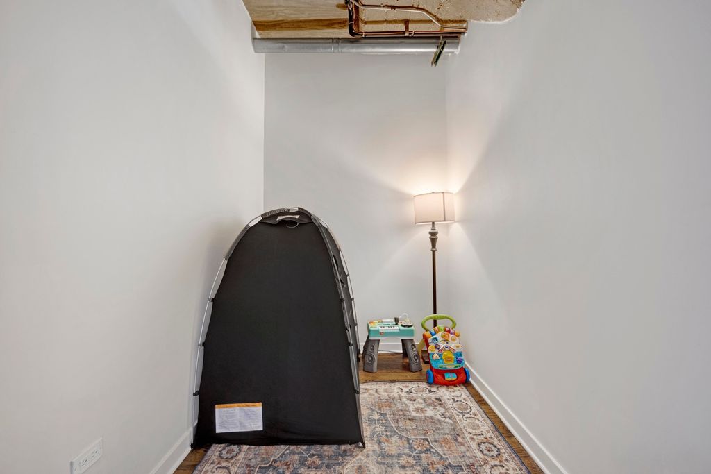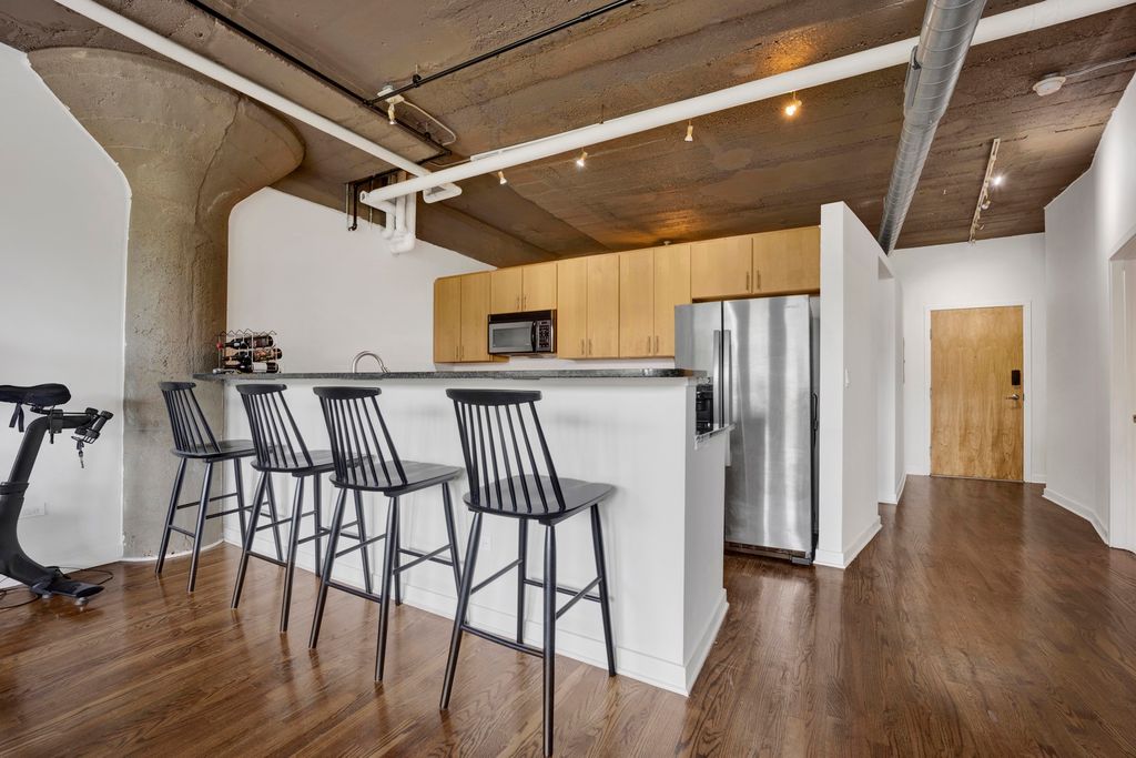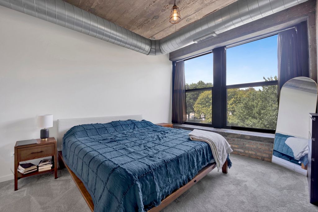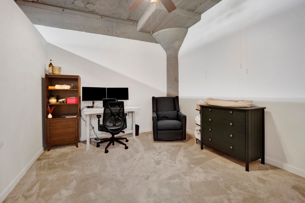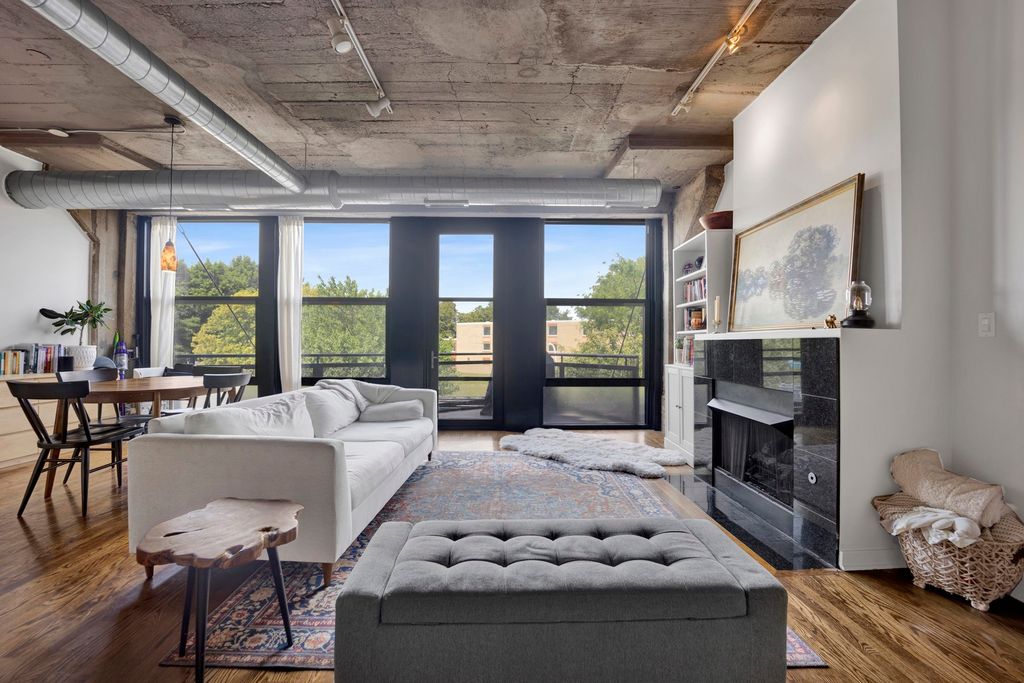 Bright & Spacious 2-Bedroom + Den Loft in University Commons - Full Amenity Living, Just Minutes from Downtown This massive, sun-drenched condo in the heart of University Commons truly stands out. Freshly painted and featuring brand-new carpet, this oversized 2-bedroom + den loft is move-in ready and filled with natural light thanks to a full row of windows that span the living space. The dramatic 12-foot ceilings, exposed concrete, floor-to-ceiling windows, and hardwood floors create an impressive yet inviting industrial-chic vibe. A cozy fireplace anchors the living area, and your private balcony offers stunning views of the city skyline. The sleek galley kitchen boasts granite countertops, 42" custom cabinets, stainless steel appliances, and a breakfast bar-perfect for entertaining. The spacious den is ideal for a home office or flex space. An in-unit washer/dryer and generous closet space provide convenience and comfort. Live luxuriously in one of University Village's premier full-amenity communities. University Commons offers residents access to a rooftop deck, fitness center, pool, private movie theater, courtyard, and even on-site dog runs-perfect for pet lovers. Enjoy unbeatable proximity to downtown, public transit, parks, shopping, and dining-all just steps away.! Click on 3D tour to walk through unit.