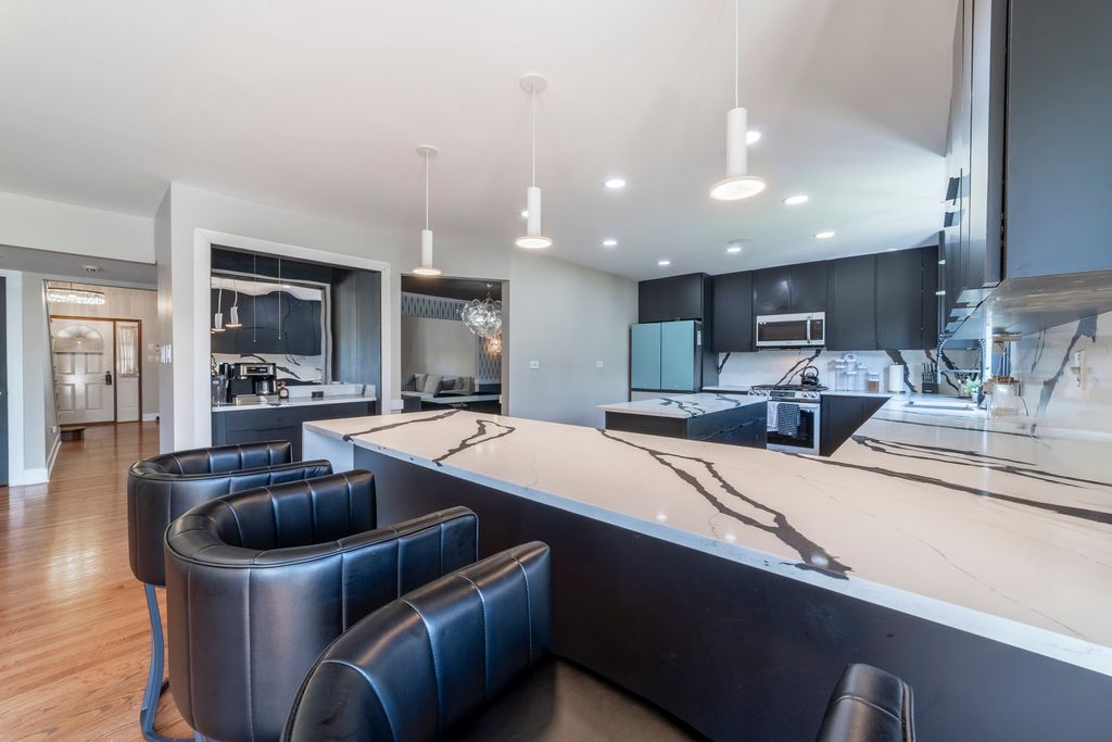 Get ready to be impressed by this exceptionally large and gorgeous home located within the Lincoln-way East high school district. This is NOT your typical "fane" style home; it is way bigger than most! Tall ceilings and smoked glass railings greet you as you enter the impressive living space. The main level has been remodeled with a new kitchen that features beautiful quartz counters and backsplash plenty of recessed lighting and a generous breakfast bar. Also on the main level you will enjoy a remodeled full bath, ensuite bedroom and updated flooring. Check out the view of the in-ground salt water pool, hot tub and gazebo while you relax in the family room featuring a quartz surround fireplace. Venture up the oak stairs to 4 good sized bedrooms including a massive primary suite and a loft. The basement can be accessed through the garage or home and is gigantic. There is plenty of play space for your enjoyment, another fireplace, a full wet bar with frig and a dance floor area with your very own disco ball! Schedule your private showing today.