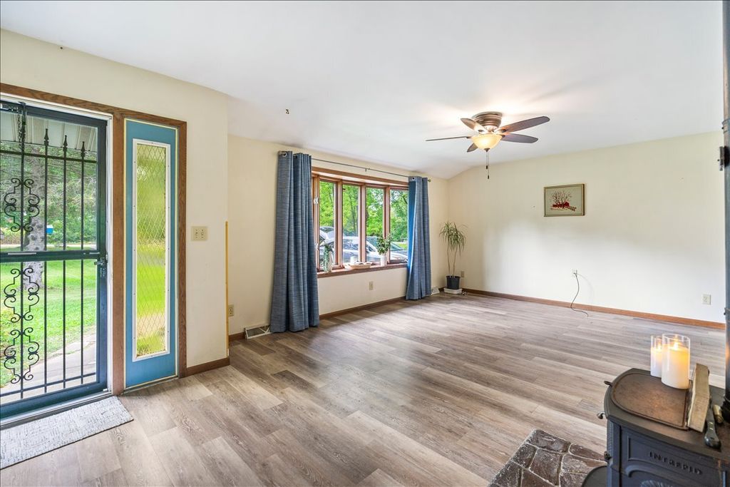 Welcome to this classic ranch home, perfectly set on 2 acres of peaceful countryside. The home features a wood-burning stove for cozy evenings, an attached 2-car garage, and a full basement with partial finishing that offers flexible space for storage, hobbies, and a workshop. Step out of the kitchen and enjoy the east-facing screened porch, ideal for morning coffee while soaking up the sunrise, or catch the sunsets of the west-facing front of the home each evening. A detached shed with a roll-up door provides even more storage or workspace options-perfect for equipment, projects, or outdoor toys. The homes roof is about 8 years old and the porch roof was done in 2024. The HVAC is serviced twice a year with a contract, water softener is rented. Professionally cleaned allows you to move right in and put your touches to it a little at a time. Room dimensions and square footage are approximates, verify anything of importance. Home is sold As-Is