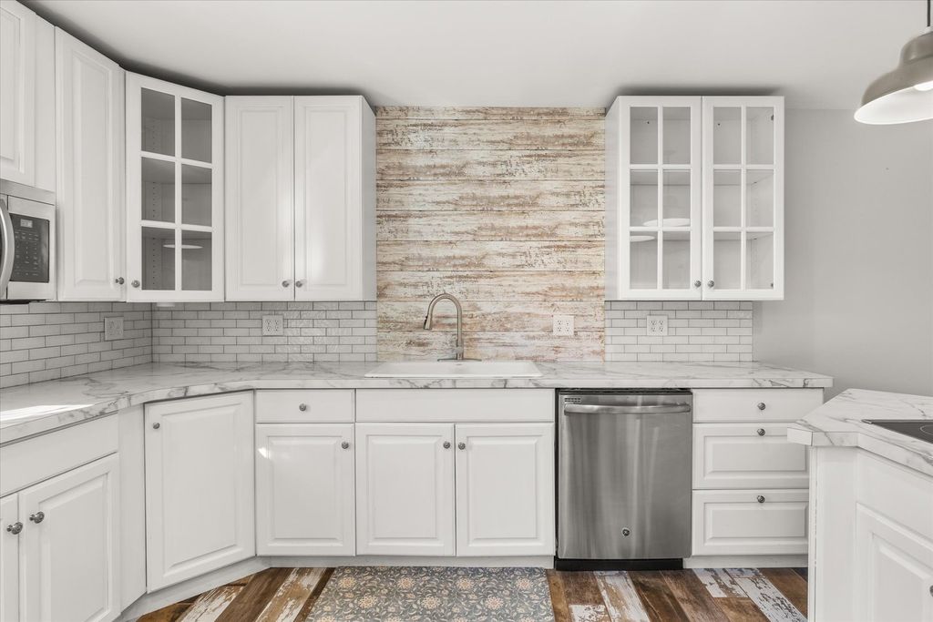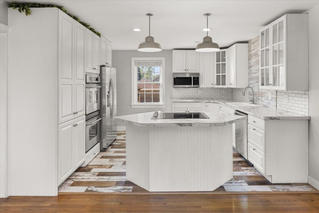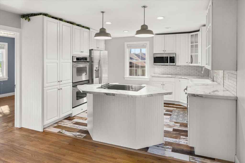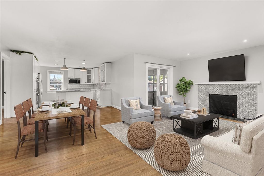 **Charming 2 Bed, 1.5 Bath Updated Ranch with Finished Basement & Enclosed Porch!** Welcome home to this beautifully updated ranch that blends charm, comfort, and modern finishes throughout. Step onto the *adorable enclosed front porch*-the perfect spot to enjoy your morning coffee all year round. Inside, you'll love the *open concept* living and dining areas featuring *rich hardwood floors*, a cozy fireplace, and a built-in *office nook* ideal for remote work or study. The updated kitchen is a showstopper with crisp *white cabinetry*, a center island for meal prep and gathering, and sleek *stainless steel appliances*. The main floor offers two spacious bedrooms and a *stylishly renovated full bath* complete with dual sinks, gorgeous mirrors, and a contemporary vanity in elegant greys and whites. Head downstairs to a *fully finished basement* boasting a large family room-perfect for movie nights or entertaining-and a convenient half bath with an *oversized tiled shower*. Additional highlights include a *single-car detached garage* and a fully enclosed porch to enjoy all four seasons. This home is move-in ready and full of character-don't miss your chance to make it yours!
