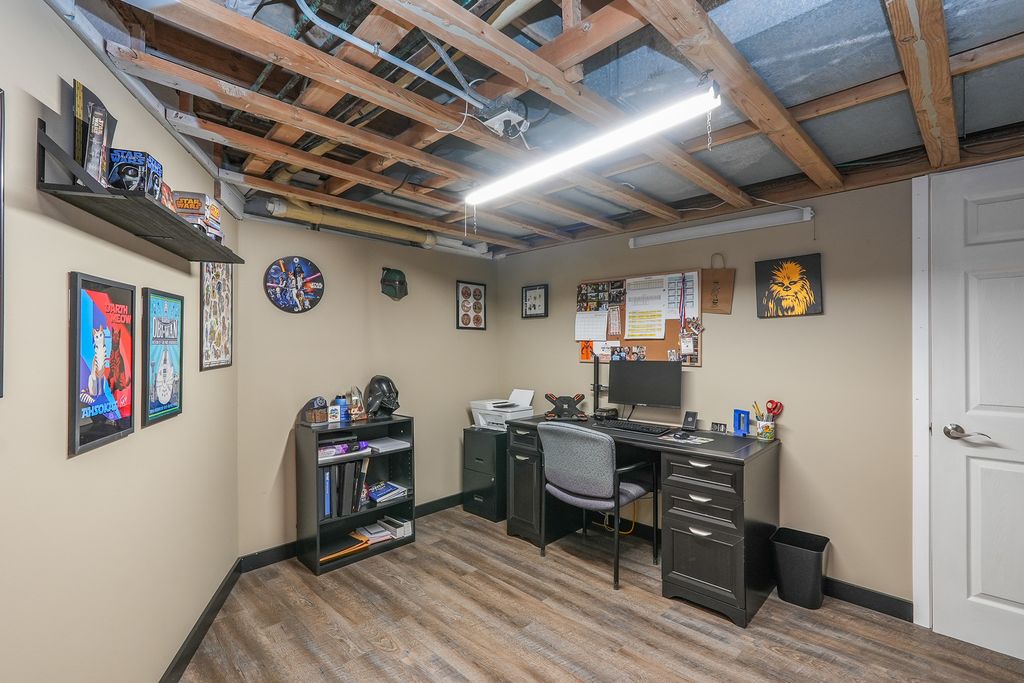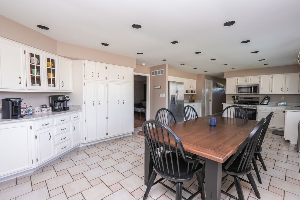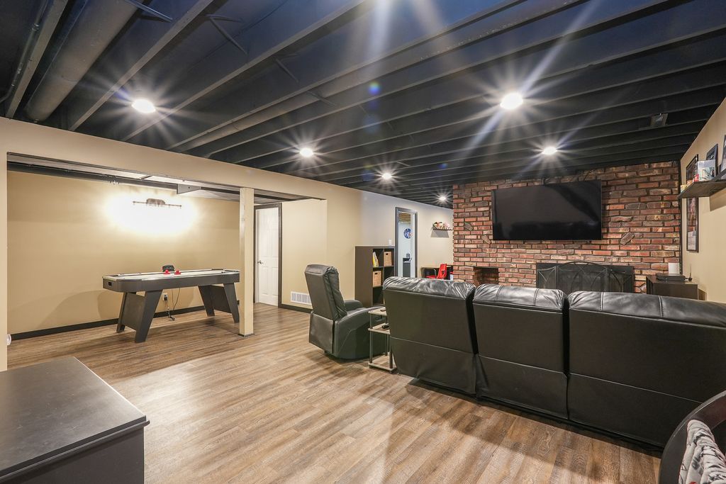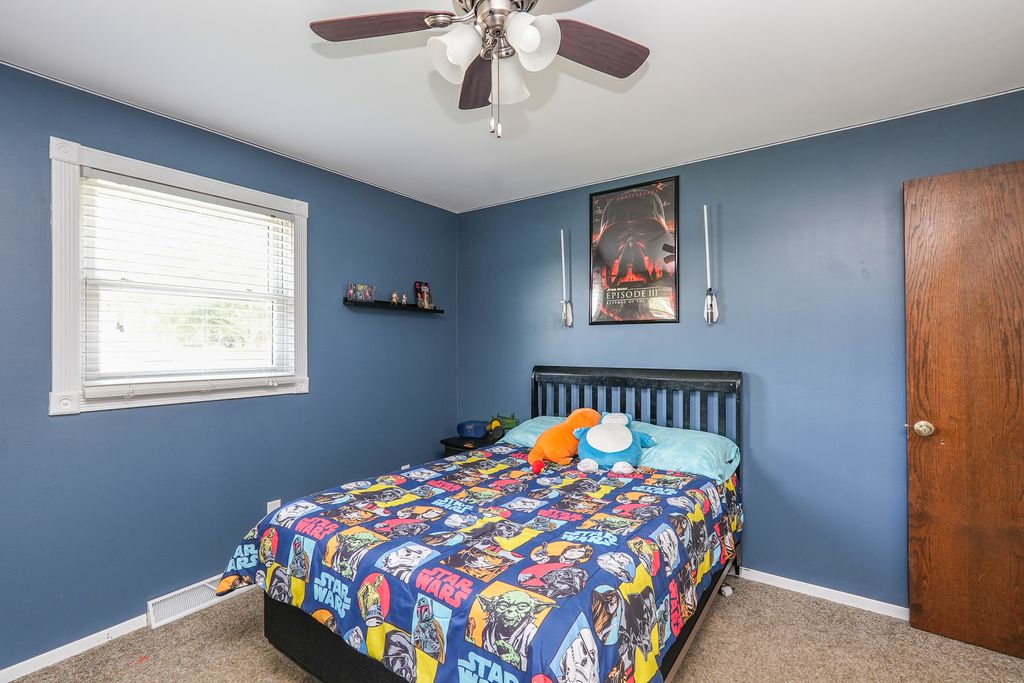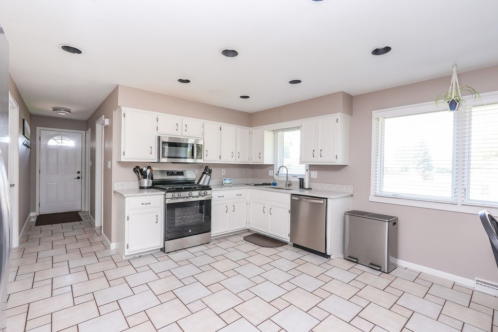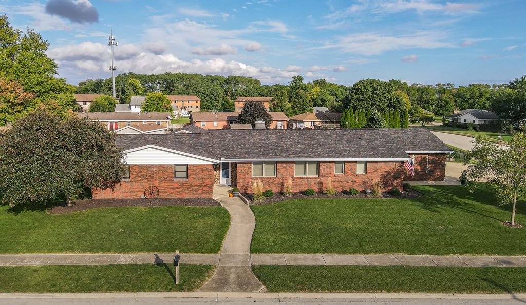 All brick 3 bedroom with a possible 4th, 2 bath ranch situated on a huge double corner lot! Step inside to a spacious eat in kitchen featuring bright white cabinetry, stainless steel appliances, and new quartz countertops. The focal point of the living room is the stunning floor to ceiling brick fireplace, creating a warm and inviting atmosphere that's perfect for gatherings or quiet evenings at home.The finished basement offers additional living space with a cozy brick fireplace, living room, possible 4th bedroom, and a multipurpose room. Unwind in the Florida room while enjoying views of your inground pool, complete with a diving board, the ultimate setting for summer fun and entertaining. A pool house with plumbing and electrical offers great potential but will need rehab to make it your own. Outside, a massive fenced yard with a basketball court and fire pit sets the stage for endless outdoor recreation. This one of a kind home is ideally located near schools and Heritage Park, offering over 3,600 square feet of living space. A must see, don't miss your chance to make this one yours! Roof 23, Furnace 22