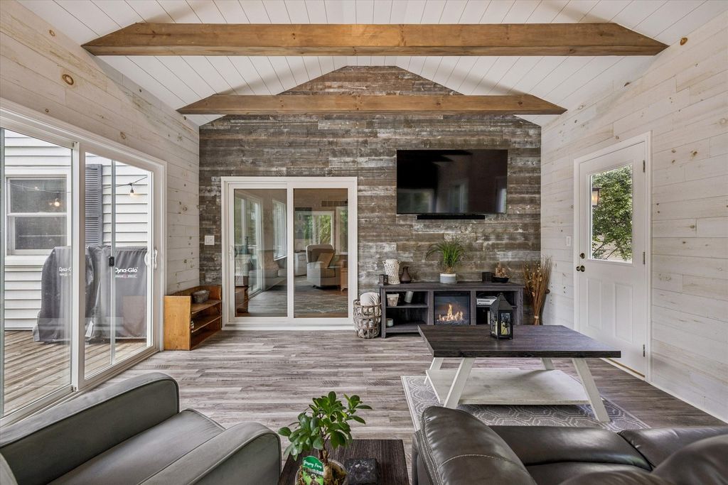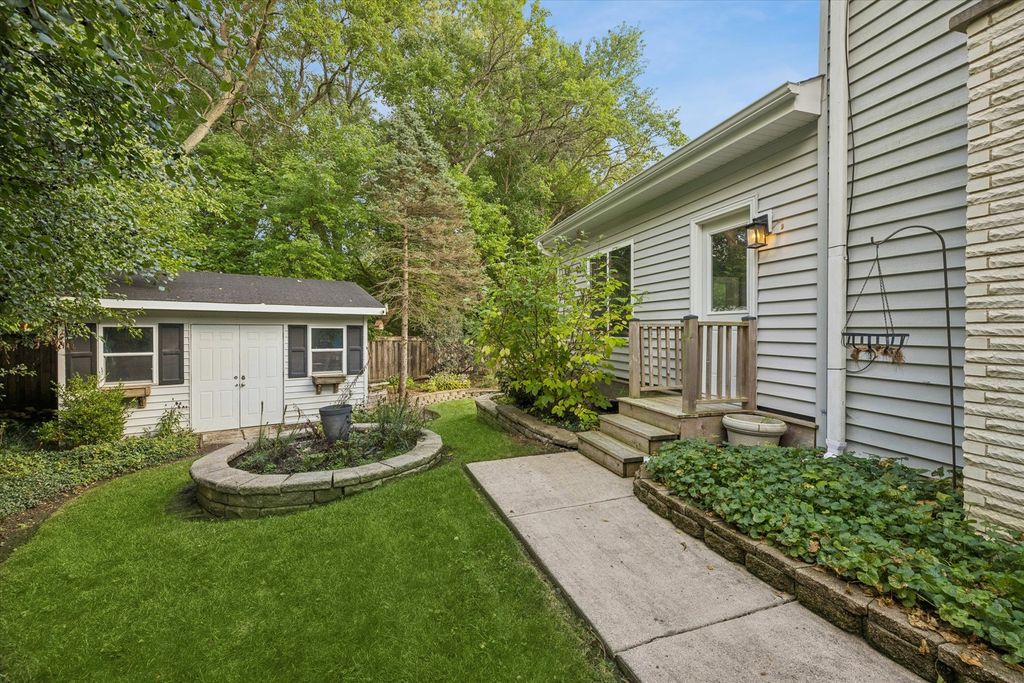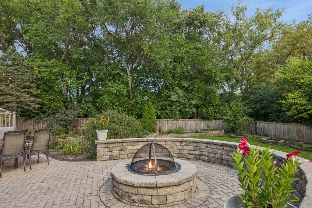 Welcome to this stunning 5 bedroom home with over 3,000 square feet of living space - perfect for families or multi-generational living. This beautiful residence greets you with a dramatic stacked stone accent wall in the foyer and elegant hardwood floors that run throughout the home. The sunlit living room and dining room offer great entertaining space, and lead to the chef's kitchen, featuring white cabinetry, stainless steel appliances including double ovens, a pantry, and breakfast nook. The spacious kitchen opens to the inviting family room, highlighted by the floor-to-ceiling stone fireplace that complements the foyer. Enjoy gatherings in the spectacular, newly added three-season room with beautiful cathedral ceilings and exposed beams. A powder room and a convenient laundry/mudroom with service door and chute complete the main level. Upstairs, retreat to the primary suite featuring a large bedroom, bathroom with separate vanity area, and a large walk-in California closet. Four additional generously sized bedrooms are served by a hallway bathroom with double sinks - ideal for busy mornings. The finished basement expands your living space with a huge recreation room and storage space! Step outside to a private backyard oasis featuring an oversized deck, brick paver patio with gas line, built-in firepit, and stone retaining wall, plus a storage shed and landscaped planters. Located close to shopping, dining, forest preserves, and community pool, this is a must-see home boasting style, convenience, and space!