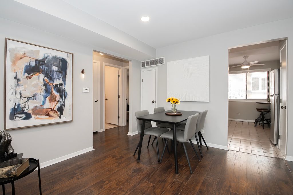 Stylish and move-in ready 2 bedroom, 2 bathroom condo in a beautifully landscaped, well-maintained courtyard building. This top-floor home offers a bright, open layout with modern updates throughout. The spacious living room features recessed lighting, newer wood laminate floors, and sliding doors to a private balcony overlooking the courtyard. The kitchen is appointed with granite counters, stainless steel appliances, and abundant cabinet space, while both bathrooms have been tastefully updated. The primary suite is generously sized, complemented by a versatile second bedroom. Residents appreciate the peaceful, quiet setting of this building, which is close enough to enjoy the restaurants, shops, and nightlife of Edison Park, yet far enough removed to offer a relaxing retreat. Additional conveniences include ample closet space, central air, a large private storage unit, shared laundry, and one exterior parking space. With easy access to the Metra and expressways, this home combines comfort, style, and convenience - truly a must-see. AS-IS