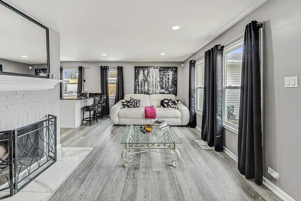 Welcome to this updated 3-bedroom, 1-bath ranch home in Park Forest! Renovated in 2024, this home features a brand-new kitchen with sleek black granite countertops, new cabinets, and ample dining space. Cozy up by the wood-burning fireplace in the living room or enjoy the convenience of new ceiling fans in all bedrooms. The updated bathroom boasts a walk-in shower, stylish ceramic tiles, and new cabinetry. Freshly painted throughout, the home also offers reworked electrical in key areas for added efficiency. Durable waterproof gray-finish flooring enhances both style and function, while the private laundry room adds convenience. Additional updates include a new hot water heater, built-in microwave, and improved kitchen plumbing. Step outside to a spacious backyard with a deck. Located just two blocks from a running track, this vibrant suburb offers Freedom Hall Performing arts, Park Forest Aqua Center, this move-in-ready home is a must-see!