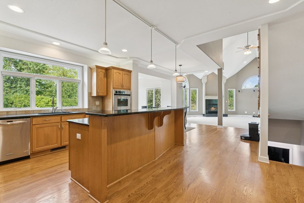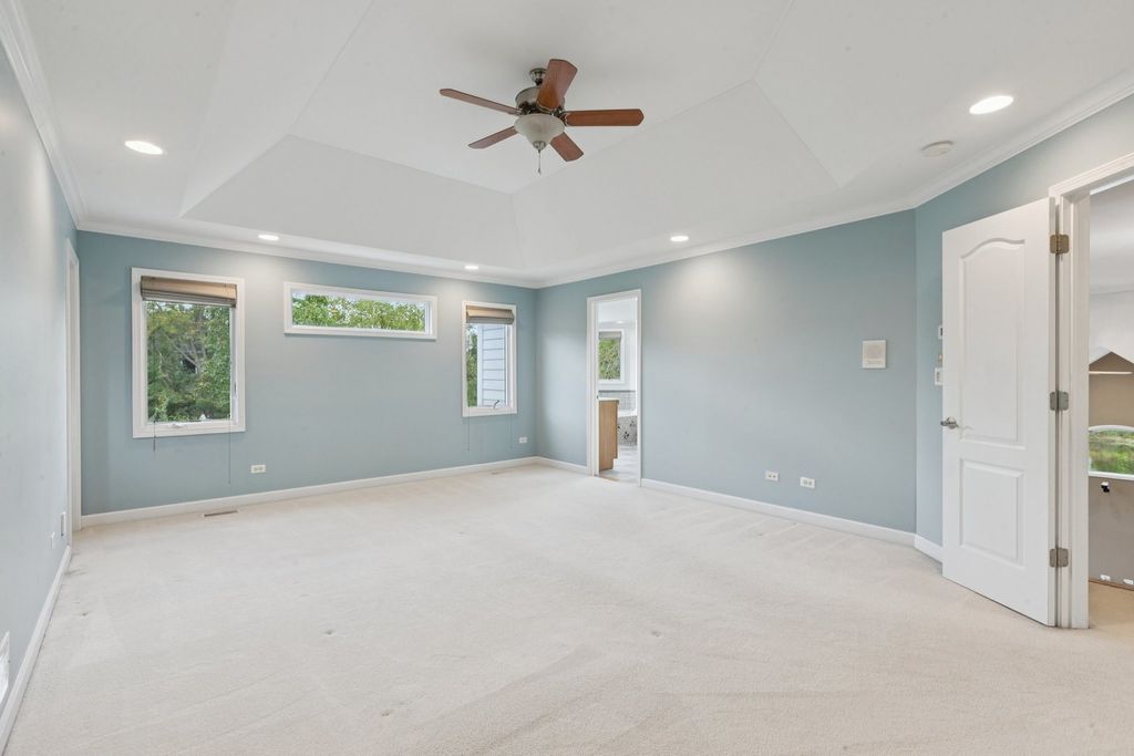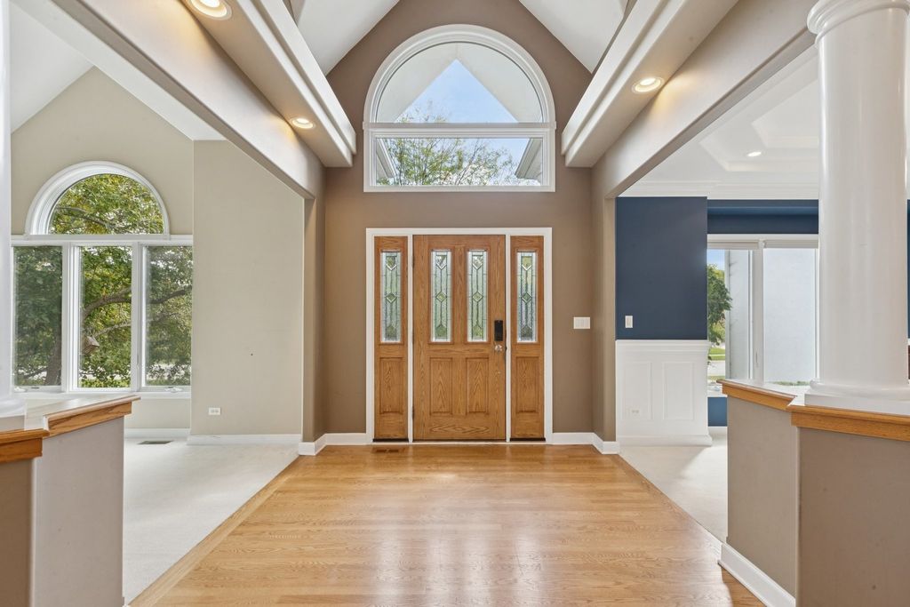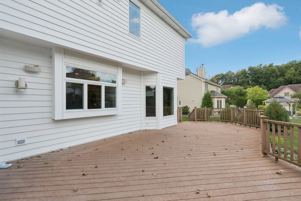 Are you ready to be impressed? Look no further! This custom built home has so much to offer! This beautiful Black Walnut Trails home is on one of the best lots in the neighborhood. From the moment you walk into the front door, you will see what a unique, spacious home this is. On the main floor, you will find several rooms with soaring ceilings. Relatively open floorplan is flexible and practical for your specific needs. Formal living room and dining rooms provide tons of natural light and decorative pillars. The family room is open to the second level with a grand staircase, making it the perfect centerpiece of the home. The chef's kitchen is perfect for entertaining. Large center island with seating will be the perfect place for people to gather. Stainless appliances, breakfast bar, tons of cabinet space, table space adjacent to the sun room, granite countertops and large pantry/planning space. Don't forget the main levels private office with built in bookshelves, the oversized mudroom/laundry room off the garage with extra storage, and the 1/2 bathroom. Upstairs the primary bedroom has double doors, tray-ceiling, a large walk-in closet with custom storage system and a private ensuite bathroom complete with luxurious, jetted soaking tub surrounded by decorative pillars, separate vanities and walk-in shower. There are three other bedrooms upstairs, each with direct access to a bathroom (including a Jack and Jill bath), generous sized closets and volume ceilings. Looking for more space? Head down to the full basement featuring 9FT ceilings, lookout windows, and a finished, full bathroom. This basement goes on and on and has an abundance of space and layout possibilities. The oversized, 3 car garage rounds out all of the storage space in this gorgeous home. What sets this home apart is the superior location of the lot that sides to one of the neighborhood ponds. Enjoy the tranquility from your oversized, maintenance free deck and brick patio. Surrounded by mature trees, this yard will be a wonderful place for outdoor recreation and entertainment. This home is also an eco-friendly home that has an 11 kw solar system installed (not leased), and a 240v, 40 amp outlet in the newly epoxied garage ready for your electric vehicles. You will see cost savings here! Neighborhood features include: large community park, tennis courts, several ponds and many bike/walking paths. Close to golf course, Bliss Forest Preserve, restaurants & shopping, and easy I-88 access. Don't miss this fantastic home!