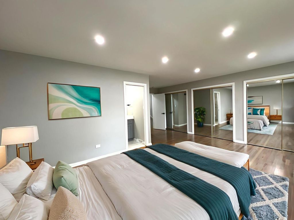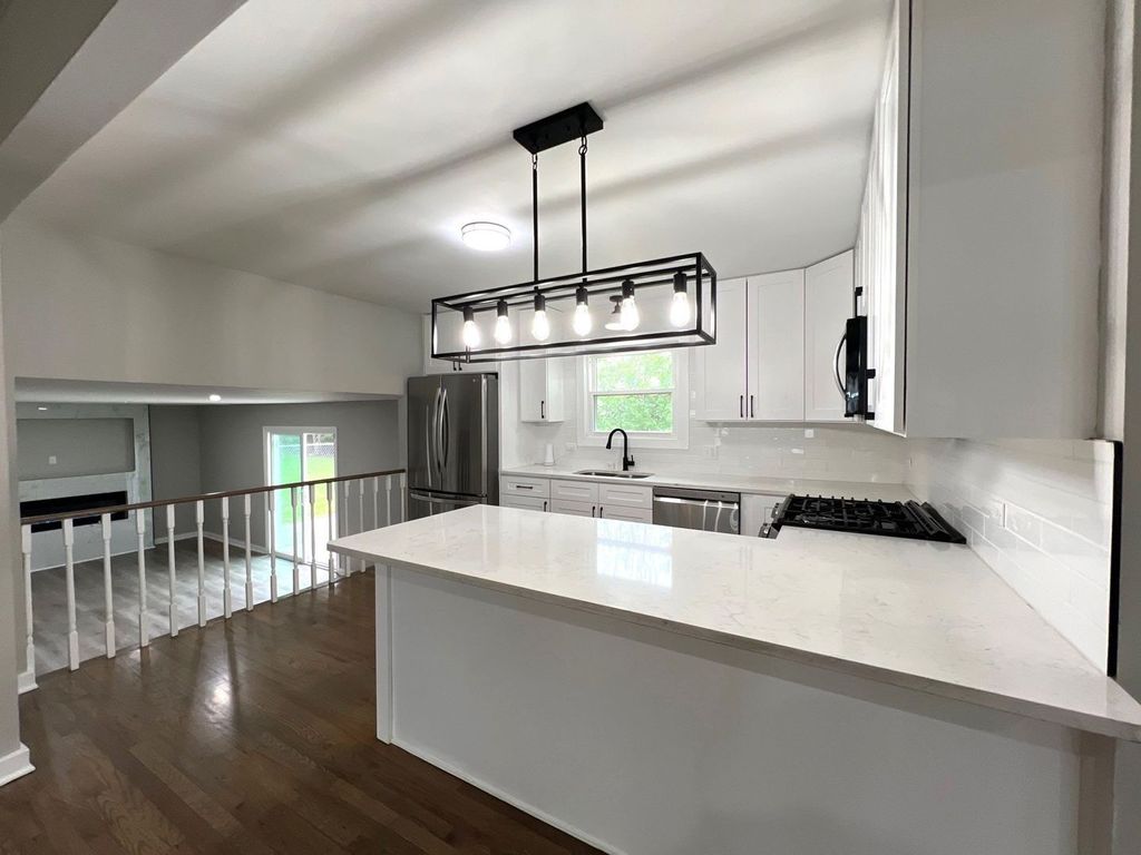 Welcome to this beautifully updated 4-bedroom, 2.5-bath home featuring a 2-car garage and a fully fenced yard. The modern kitchen boasts a large island, quartz countertops, white shaker cabinets, and premium GE stainless steel appliances. Throughout the home, you'll find real hardwood floors, vaulted ceilings, and neutral paint tones that enhance the open feel. Additional upgrades include custom teak vanities, finished railings, updated trim and casing, and all-new interior doors-offering a refined and contemporary living space inside and out. lease text Jennifer the Admin with contact information in showing assist before ending to disable the dispatch enabled security system. Schedule your private showing today. There is no home owners exemption, and the property taxes would be reduced substantially as a primary residence.