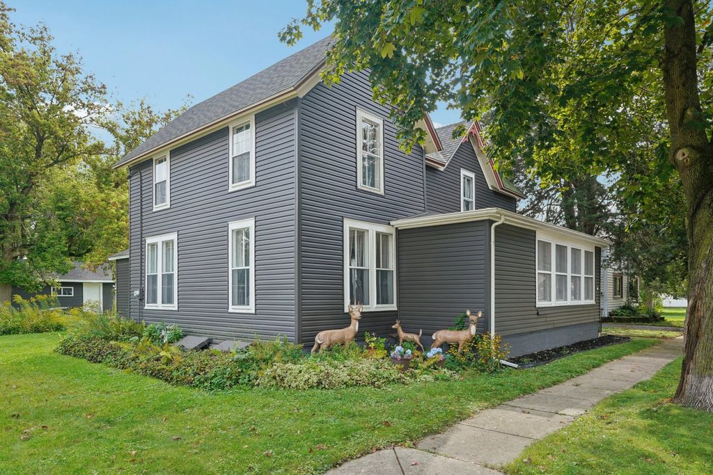 Classic corner-lot home in the heart of Genoa City across from a grade school and minutes from highways. Main level offers maple floors, dining with built-in china cabinet, kitchen with covered deck access, primary bedroom with walk-in closet, bonus room for guests or home office, full bath, and a 20x10 enclosed porch. Upstairs has three bedrooms, and the large unfinished basement gives you endless possibilities. Detached 2.5-car garage completes this versatile home. Space, convenience, and flexibility in one package. Move-in ready. Homes like this don't last!