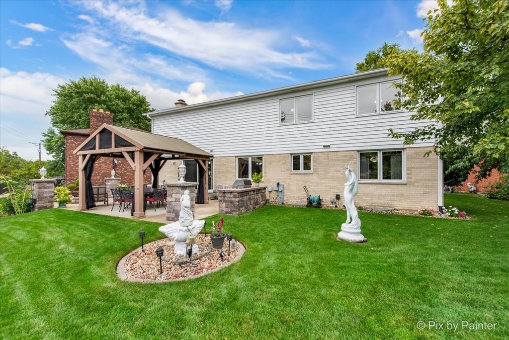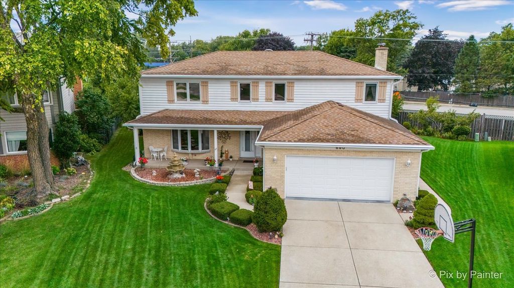 ABSOLUTELY METICULOUS HOME INSIDE AND OUT! RELAXING COVERED FRONT PORCH LEADS INTO AN INVITING 2 STORY FOYER ~ FORMAL LIVING ROOM WITH BAY WINDOW FLOWS INTO A VERY SPACIOUS FORMAL DINING ROOM. UPDATED EAT-IN KITCHEN OFFERS 42" CABINETS, GRANITE COUNTERS, STAINLESS STEEL APPLIANCES, PANTY CLOSET + A LARGE BREAKFAST ROOM THAT OPENS INTO THE FAMILY ROOM WITH A WARM FIREPLACE + SLIDING GLASS DOORS TO THE WONDERFUL BACKYARD OASIS THAT FEATURES A PATIO, GAZEBO, BUILT-IN GRILLING STATION, FIRE-PIT AND AN IMPRESSIVE VEGETABLE GARDEN. UPDATED 1ST FLOOR 1/2 GUEST BATHROOM ~ LAUNDRY ROOM WITH A SERVICE DOOR TO YARD, UTIITY SINK + TONS OF CABINET STORAGE. SPACIOUS PRIMARY SUITE WITH A PRIVATE UPDATED BATHROOM, DUAL SINKS, TUB / SHOWER COMBO + A SEPARATE 2ND SHOWER, WALK-IN CLOSET WITH PROFESSIONAL CUSTOM ORGANIZERS ~ 3 ADDITIONAL GUEST BEDROOMS WITH SIZABLE CLOSETS AND AN UPDATED FULL ADJACENT HALL BATHROOM WITH DOUBLE SINKS. FULL FINISHED BASEMENT WITH A HUGE REC ROOM, 2ND FULL SERVICE KITCHEN, IN HOME SALON + PLENTY OF CLOSET AND STORAGE SPACE. ATTACHED 2 CAR GARAGE WITH FINISHED APOXY FLOOR AND CONCRETE DRIVEWAY. IDEAL LOCATION NEAR MAJOR EXPRESSWAYS, O'HARE AIRPORT, FOREST PRESERVE, SHOPPING AND DINING!
