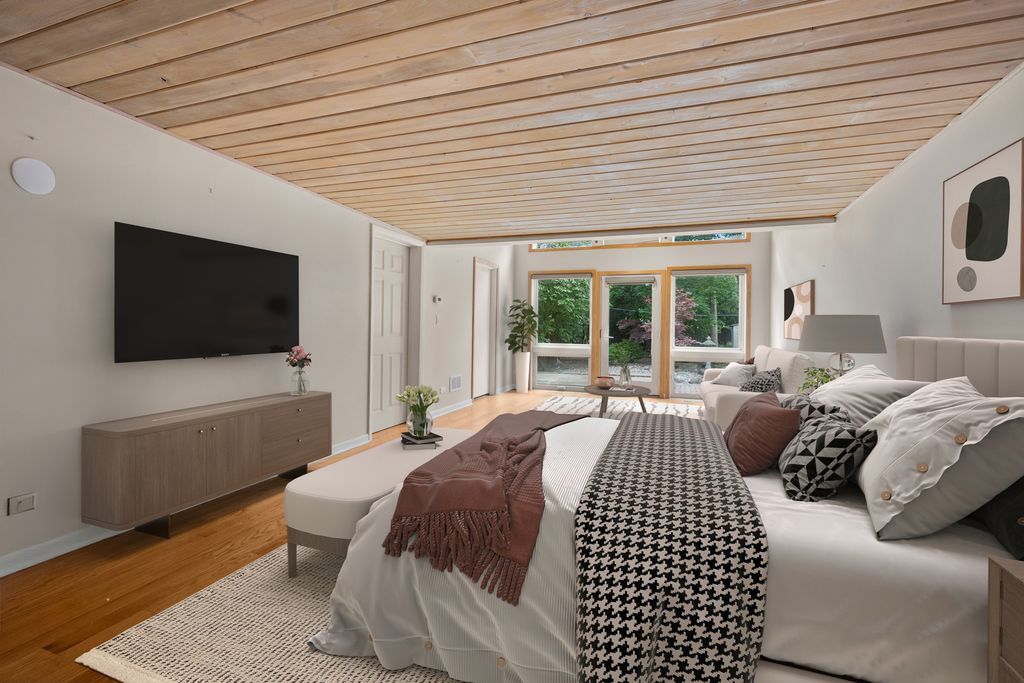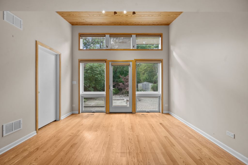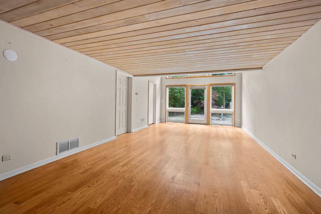 Is it a split? Ranch? No it's both! Located at end of cul-de-sac near Ravinia District Metra & Park. Split level with large 1st floor Primary suite addition w/bath, separate shower, whirlpool, double sink, 3 walk-ins, & Den/sitting room with sliders to brick patio. Additional sun room off the den/sitting room. The original house features a vaulted Living room with full height stone fireplace, Dining room, hardwood floors, lower level Family room, 2 additional bedrooms & baths. Laundry off Primary suite wing. Maintenance free back yard. You can't beat this location, close to: Ravinia Festival, Botanic Gardens, Train Stations and North Shore Trail.