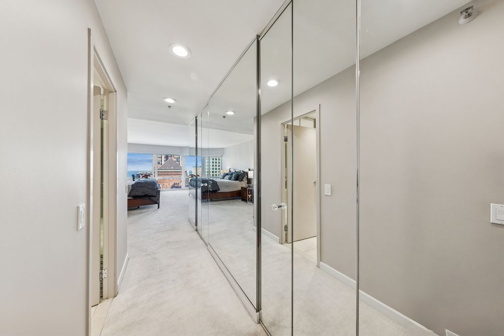Live above it all - Stunning 2300+ square feet Residence with Panoramic Views. Experience luxury living with incredible views of lake, iconic architecture and exciting sky line just off the beautiful Mag Mile. This home offers a well-designed space with an elegant foyer that flows into an expansive living and dining room. Enjoy East, North, South and Lake views from large bay windows. Recently renovated open kitchen with stylish custom cabinets, quartz countertops and backsplash, high end appliances, and breakfast bar. This home has been thoughtfully designed. Den/family room has attractive built-ins and lovely wood floors. This room can easily be transformed into a 3rd bedroom. Spacious primary bedroom has bay windows with city and lake views plus two walk-in closets. Primary bath with separate tub, tastefully tiled oversized shower, and abundant storage. Home has 2 full baths and powder room. Features include moldings, window treatments, power shades, wood and granite floors. Premier building in excellent location. Amenities include 24-hour doorman, management on-site, 24-hour maintenance, 2 exercise rooms, sauna, indoor pool, free coffee station, common terrace, party room, conference room & extra storage. Lease garage spaces with EV stations. Close to Lake, Parks, Restaurants, Museums, and Shopping on the Magnificent Mile.