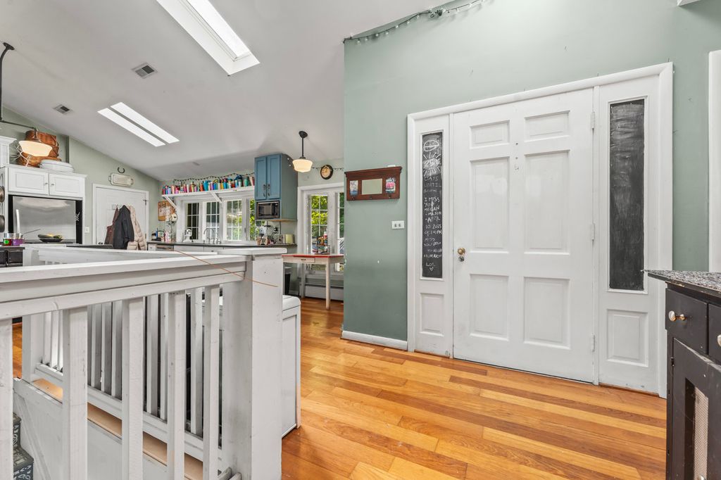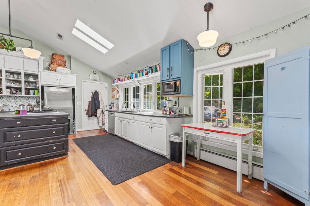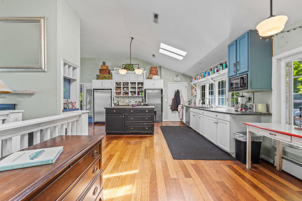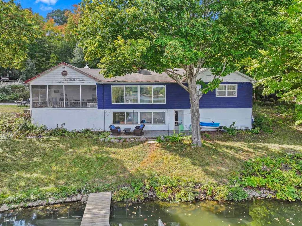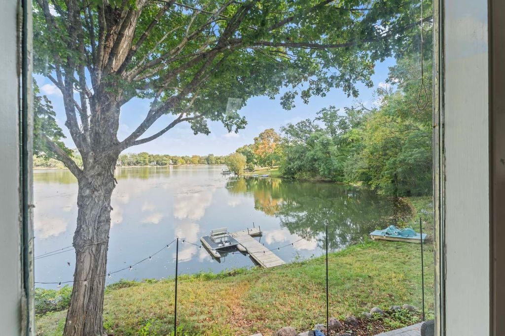 Waterfront on Sylvan Lake! Experience lakefront living with this ranch home featuring a walk-out basement, set on nearly an acre (.85 acres) in the highly sought-after Sylvan Lake community. From the moment you enter, you're welcomed by a dramatic wall of windows framing serene lake views. The open-concept kitchen, living room, and dining room boast cathedral ceilings, skylights, Brazilian Cherry floors, and a double-sided fireplace. The kitchen offers soapstone counters, a spacious island perfect for gatherings, and direct access to the garage for easy grocery unloading. Off the dining room, a screened-in porch overlooks the pier-an ideal spot to relax and enjoy the outdoors. The primary suite features lake views, a walk-in closet, and an ensuite bathroom ready for your finishing touches. Two additional bedrooms, each with hardwood floors and wall closets, share the hall bath. The walk-out lower level expands your living space with heated floors, a wood-burning fireplace, another wall of windows, a family room, full bath with shower, laundry area, and a large unfinished storage/workshop. Step outside to the stamped concrete patio for lakeside enjoyment. Additional highlights include: Oversized lot extending from the neighbor's pier to an association-owned parcel. Long driveway with parking for 6+ cars, plus a 2-car garage. Fremont School District. Boiler heat and central air. This home does require some work-yet it's a rare chance to own nearly an acre of waterfront property with tremendous potential in one of the area's most desirable communities.
