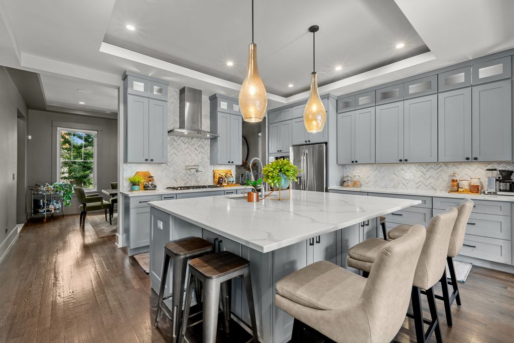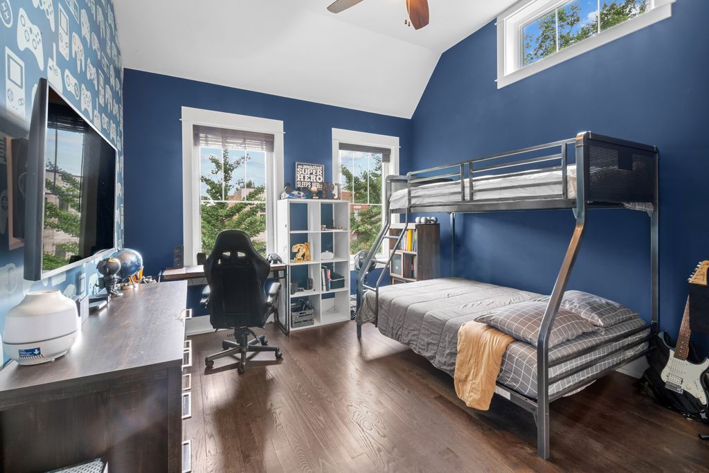 PRICED TO SELL! The house next door sold for $885,000 last year. You have built in equity in this exceptional house! Sellers are relocating. Experience luxury living in the heart of Bronzeville with this stunning 5-bedroom, 3.5-bathroom home, built new in 2018 and meticulously maintained. Move-in ready, this residence boasts countless upgrades including custom paint, elegant window treatments, trey ceilings, integrated surround sound, and a fully finished garage that is insulated, has an EV charger and can double as a studio, office, and/or home gym. The thoughtfully designed floor plan offers both warmth and functionality, perfect for entertaining or relaxing at home. The main level features a formal dining room and an exceptional gourmet kitchen equipped with top-of-the-line Jenn Air appliances, quartz countertops, a pot filler, wine fridge, and an oversized island ideal for gatherings. Just off the kitchen is a cozy family room complete with a fireplace and custom built-ins, creating the perfect everyday living space. A spacious, fully built-out mudroom is conveniently located at the rear entry, adding both style and practicality. Upstairs, the second floor offers three generous bedrooms, including a luxurious primary suite with expansive closets and a spa-inspired bathroom featuring marble finishes, heated floors, and a striking wet room with a combined shower and soaking tub. The lower level expands the living space with two flexible gathering areas- a den or family room area with a wet bar and a custom home theater with stadium seating and full projector screen, which could be easily converted into an additional bedroom. A fourth bedroom is also located on this level. Outdoor living is elevated with a beautifully designed backyard patio and a custom outdoor fireplace, ideal for entertaining or unwinding under the stars. The fully finished rooftop deck provides even more space to relax or host in style. One of the most unique features of this home is its location within a private, gated alley-a rare amenity that creates a secure environment where neighbors socialize and children can safely play. This exceptional home is filled with thoughtful details and premium features-you truly have to see it to believe it. Some furniture can be sold as well.