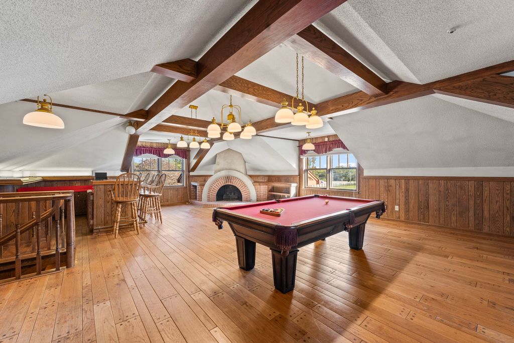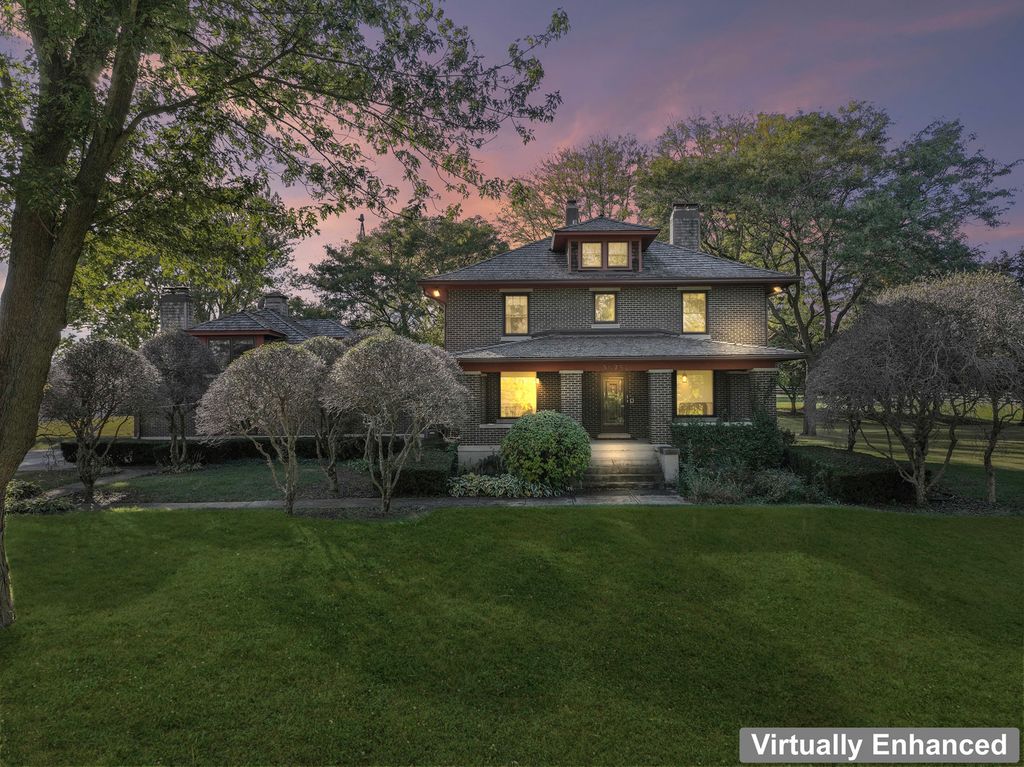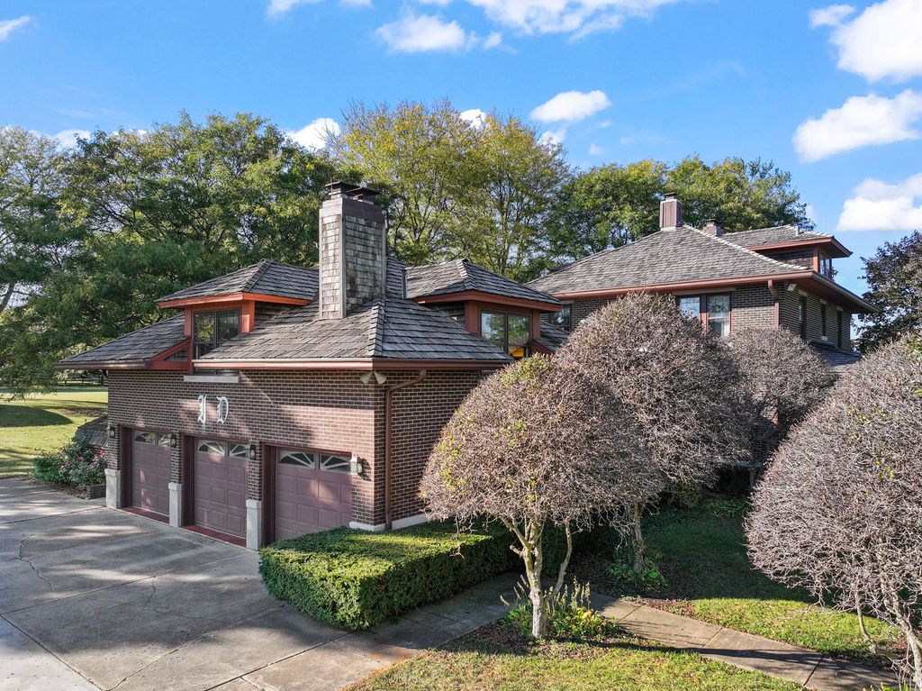 A car collector's dream! Five beautiful, wooded acres are the setting for this gracious 1930 all-brick home with four finished levels. The covered front porch evokes the charm of yesteryear, while spacious rooms, hardwood floors, cove molding, solid oak doors, and built-ins reflect timeless craftsmanship. There are four full baths, three fireplaces, and an amazing great room - "The Oak Room" - measuring 26 x 23 with a wet bar and fireplace. The finished basement includes a recreation room with fireplace and wet bar, plus a sixth bedroom. The attached three-car garage is tiled and heated, perfect for year-round use. This home is ideal for entertaining family and friends and offers versatility for the hobbyist, collector, or family business. Dual-zone HVAC systems were replaced in 2018 and 2023 and roof replaced in 2019. Two large heated outbuildings total over 11,000 square feet - one featuring a loft/retreat and 1.5 baths. The lot is wooded and level, great for creating additional recreational spaces such as a pool, sports court, or expanded outdoor living area. This well-maintained property offers endless opportunities to make it your own. Just minutes from St. Charles North High School, downtown St. Charles shopping and dining, and the Fox River Bluff West Forest Preserve with its scenic trails and river views. For almost 40 years, this home has been treasured and well cared for - now it awaits new owners to create their own memories in this remarkable setting. This property is being conveyed "AS IS" and priced below appraised value. Zoned Residential. See additional details.
